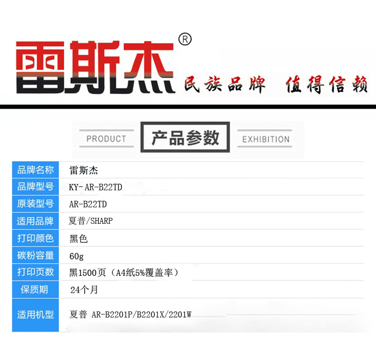 商品名称:雷斯杰 KY-夏普AR-B22TD 黑色硒鼓 适用夏普:AR-B2201P/B2201X/2201W
