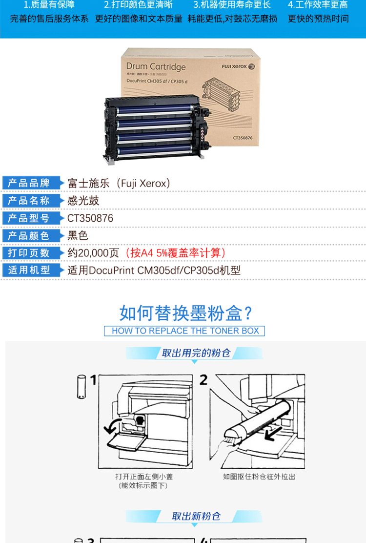 商品名称:富士施乐(Fuji Xerox)CT350876 感光鼓(适用于:DocuPrint CM305df/CP305d)