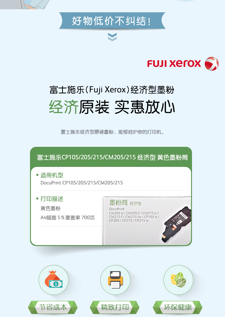 商品名称:富士施乐(Fuji Xerox)CT202548 黄色(经济型)原装墨粉盒(适用于:CP105b;CM215fw;CM215b;CM215f;CM205b;CM205f;CP215;CP215w)