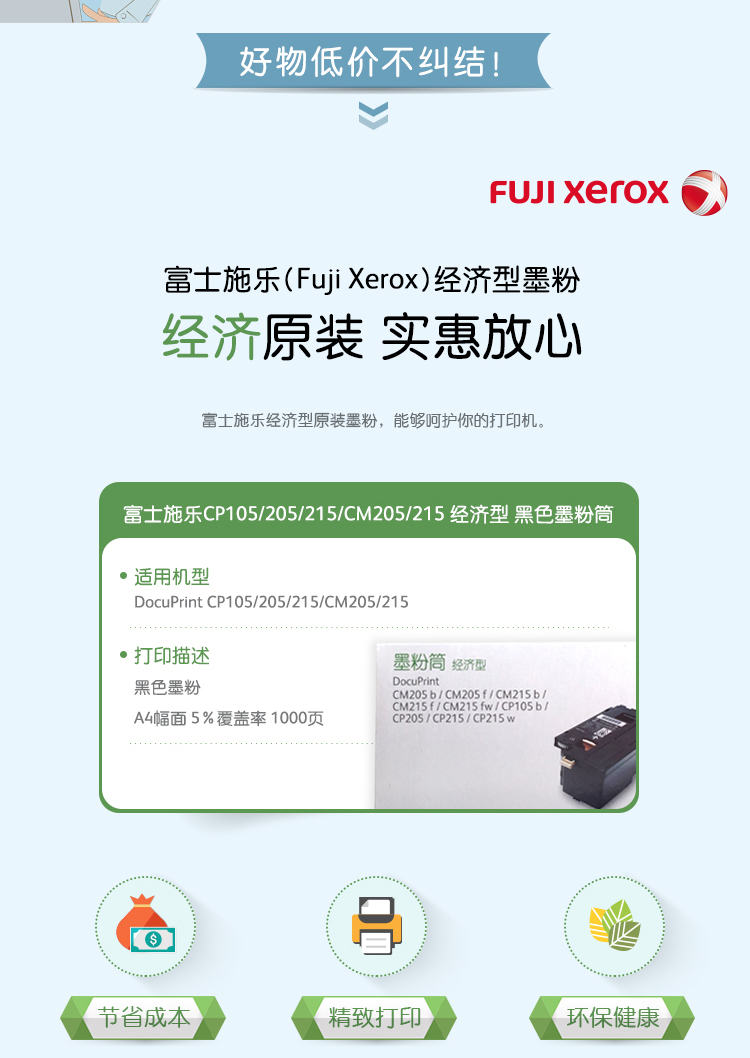 富士施乐(Fuji Xerox)CT202545 黑色(经济型)原装墨粉盒(适用于:CP105b;CM215fw;CM215b;CM215f;CM205b;CM205f;CP215;CP215w)