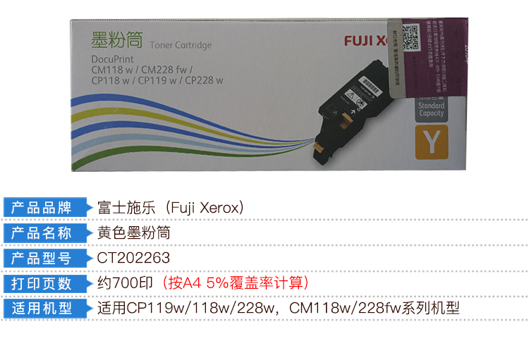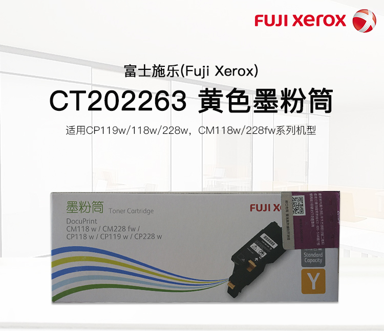 商品名称:富士施乐(Fuji Xerox) 原装 CT202263黄色标准容量墨粉盒(适用于:CP119w;CP118w;CP228w;CM118w;CM228fw)
