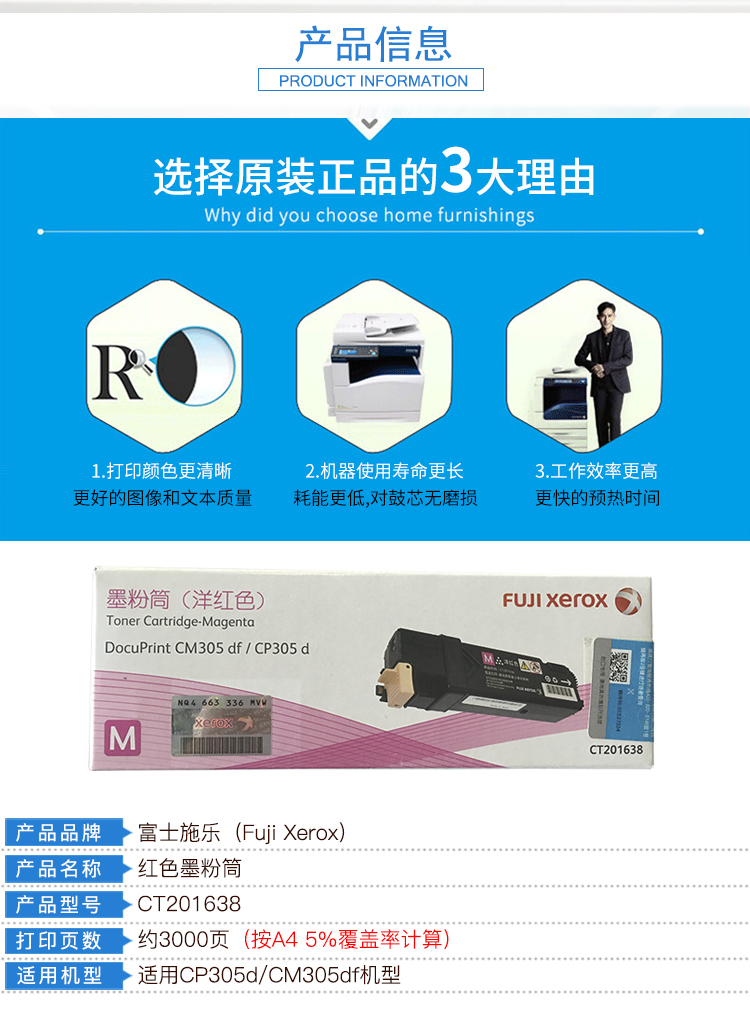 商品名称:富士施乐(Fuji Xerox)CT201638 红色墨粉盒(适用于:DocuPrint CM305df/CP305d)