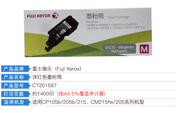 商品名称:富士施乐(Fuji Xerox)CP105红粉 CT201597 (适用于:CP105b;CM215fw;CM205b;CP215w)