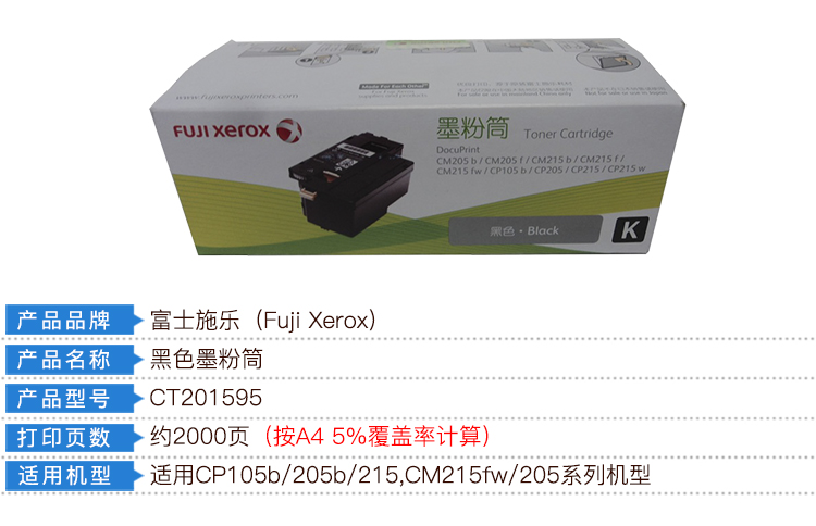 商品名称:富士施乐(Fuji Xerox)CP105黑粉 CT201595 (适用于:CP105b/CM215/CM205/CP215/CP215w)