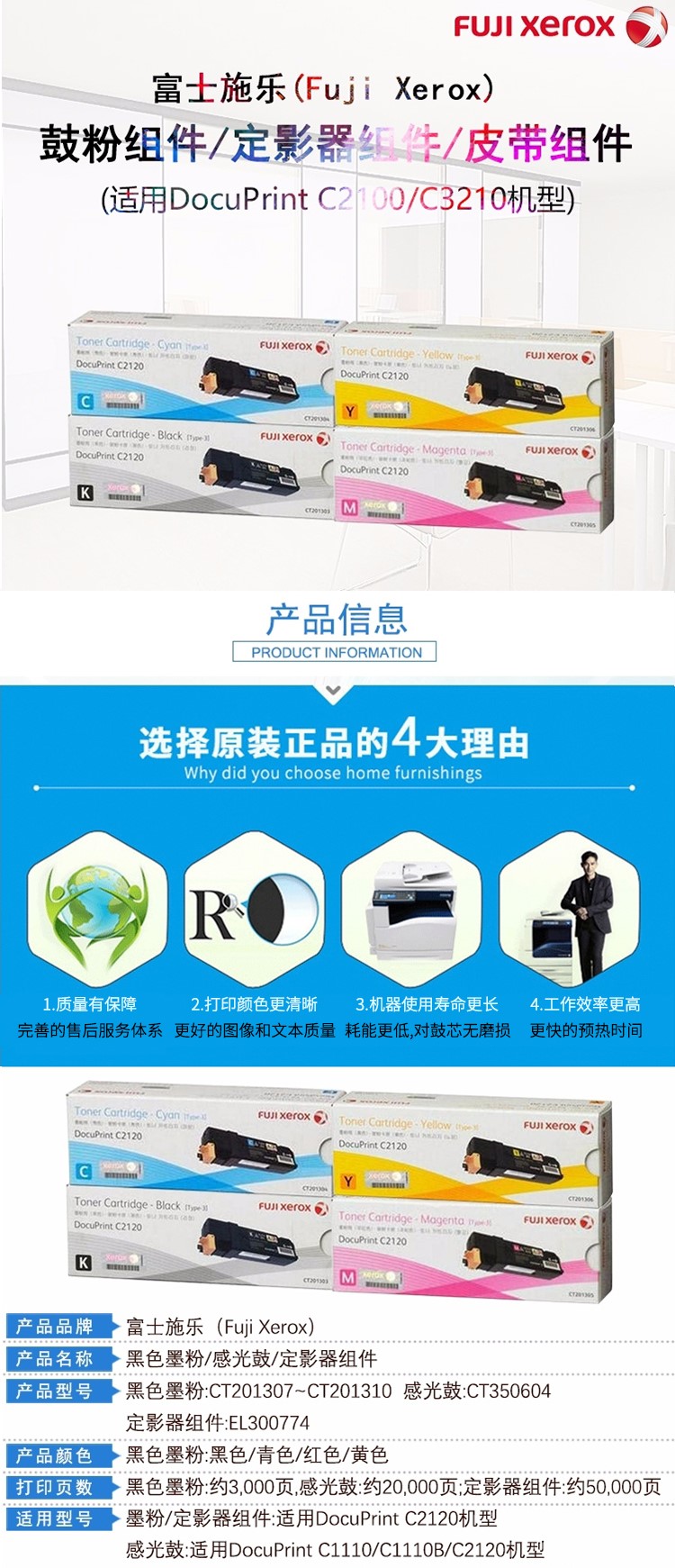 富士施乐(FUJI XEROX)CT201308粉盒 原装黑彩粉盒 (适用于:DocuPrint C2120)