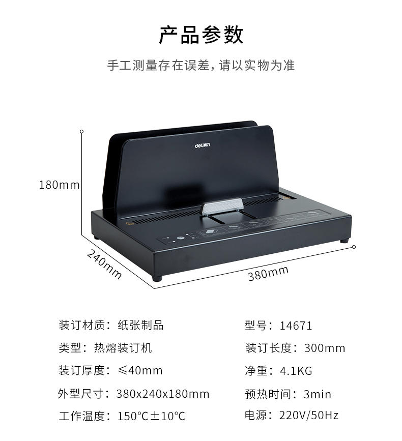 商品名称:得力14671热熔装订机(黑)
