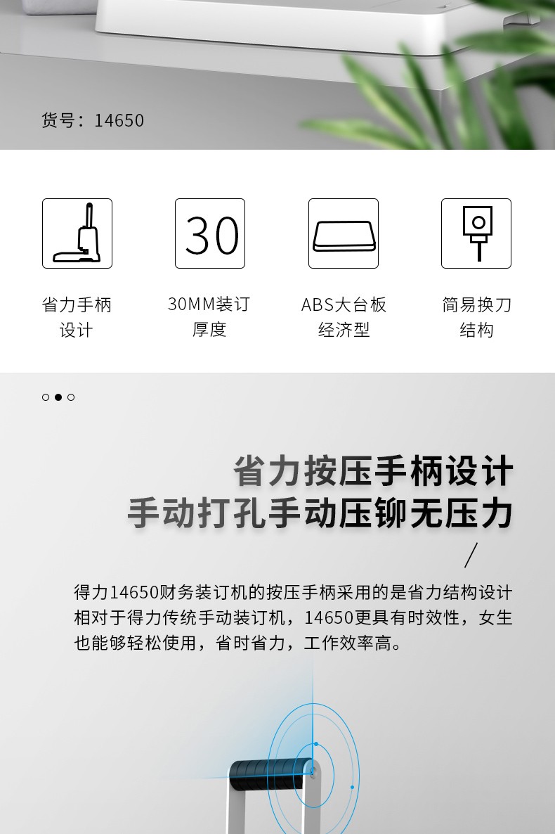 商品名称:得力14650财务装订机(白)