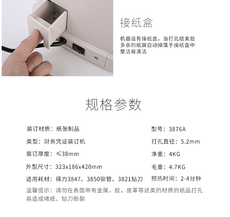 商品名称:得力3876A财务装订机(白)
