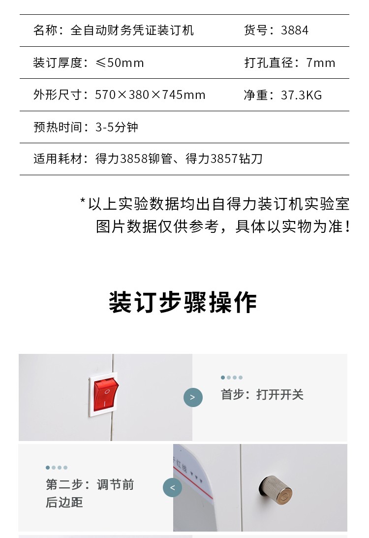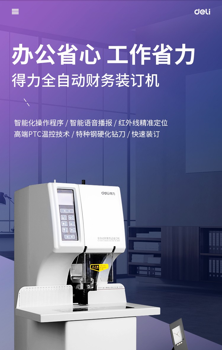 商品名称:得力3884全自动财务凭证装订机(白)(台)