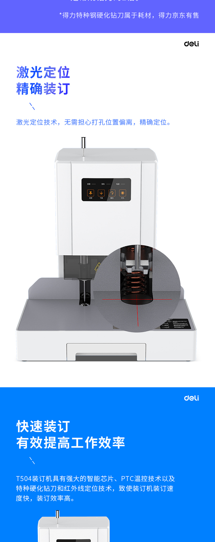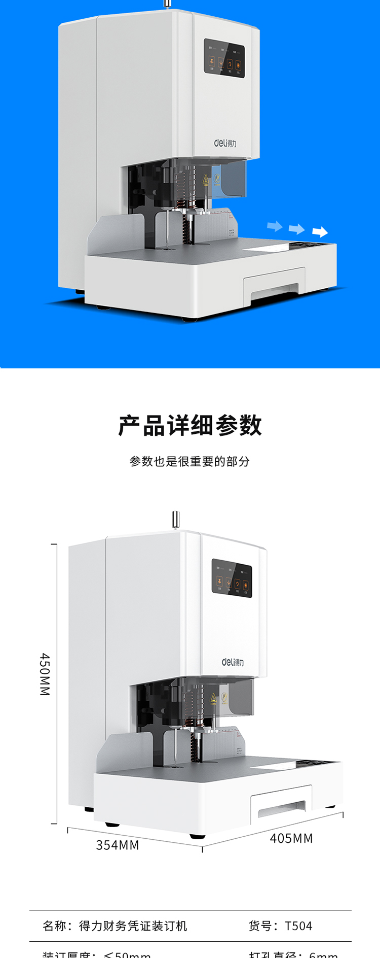 商品名称:得力T504财务装订机(灰)