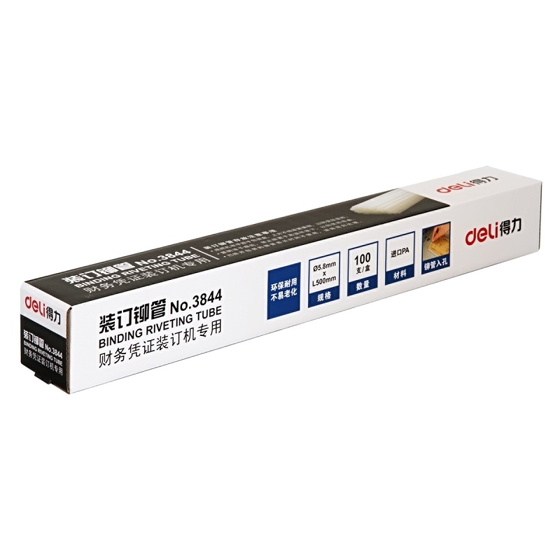 得力3844装订铆管(透明)(100支/盒)