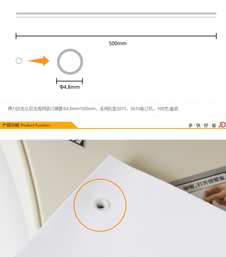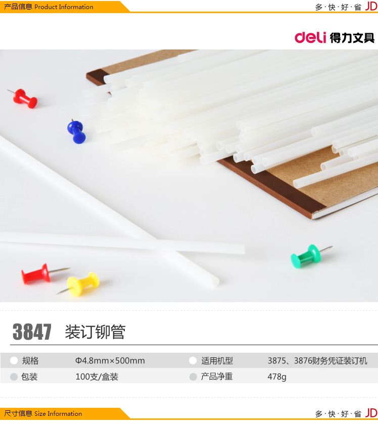 商品名称:得力3858装订铆管(白)(100支/盒)