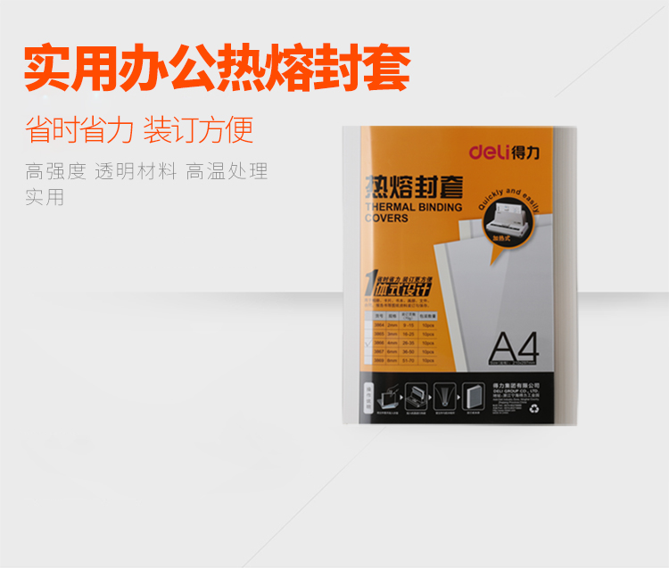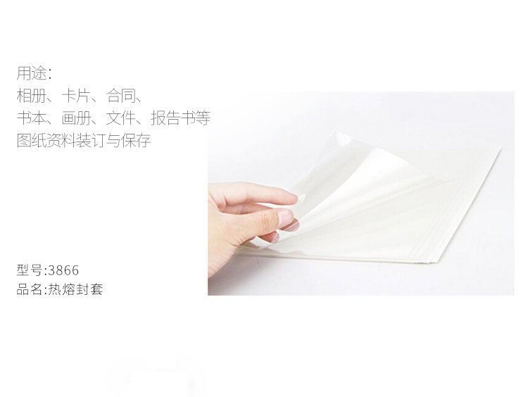 商品名称:得力3866热熔封套(白)(10PCS/袋)