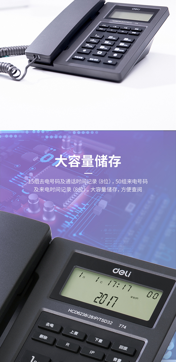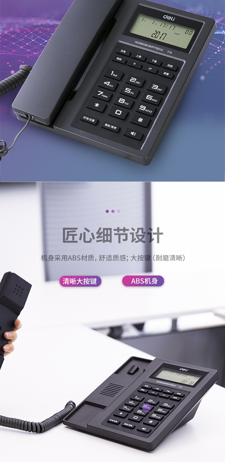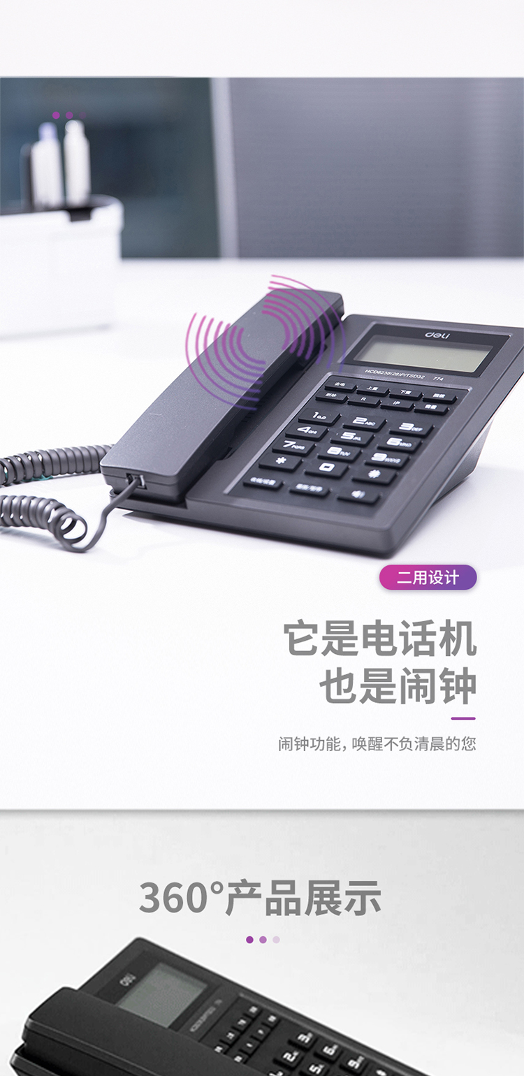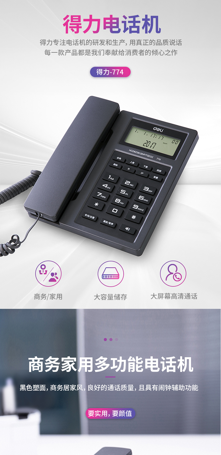 商品名称:得力0774电话机(金属灰)
