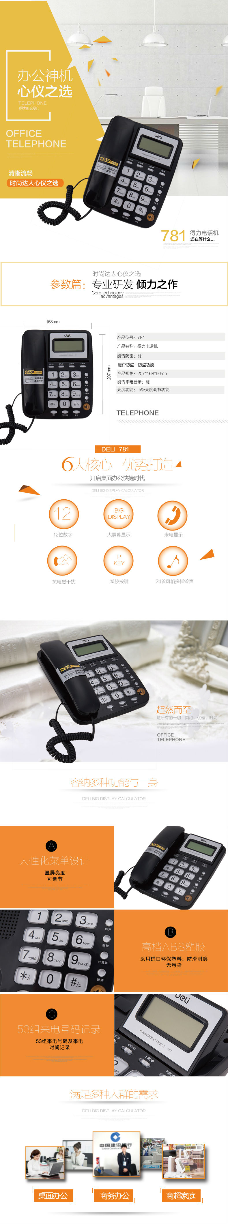 商品名称:得力781电话机(白)(台)