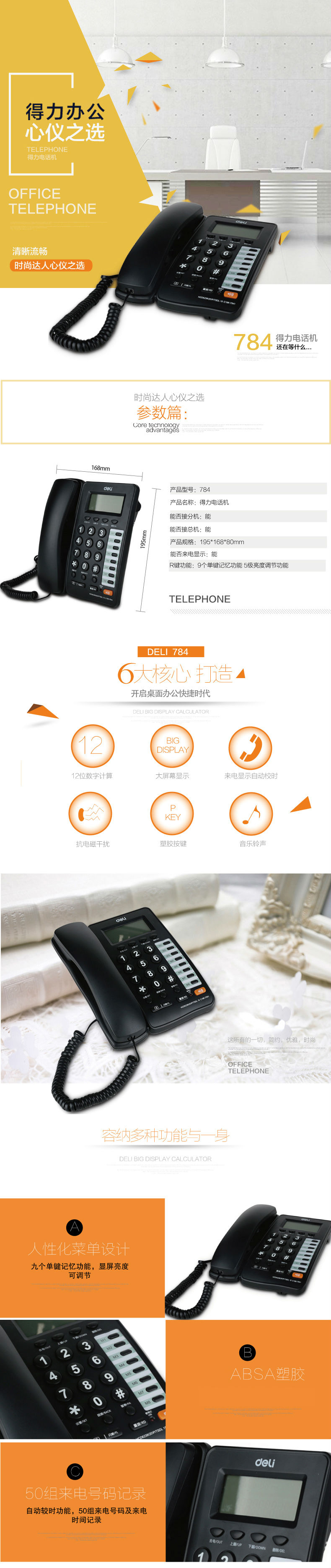 商品名称:得力784电话机(黑)(台)