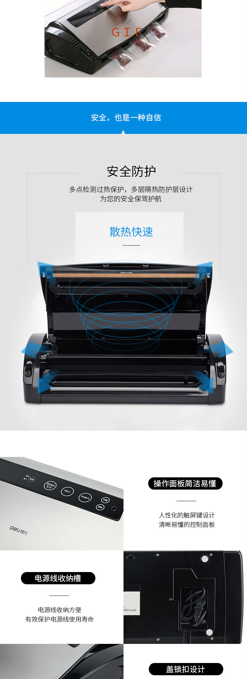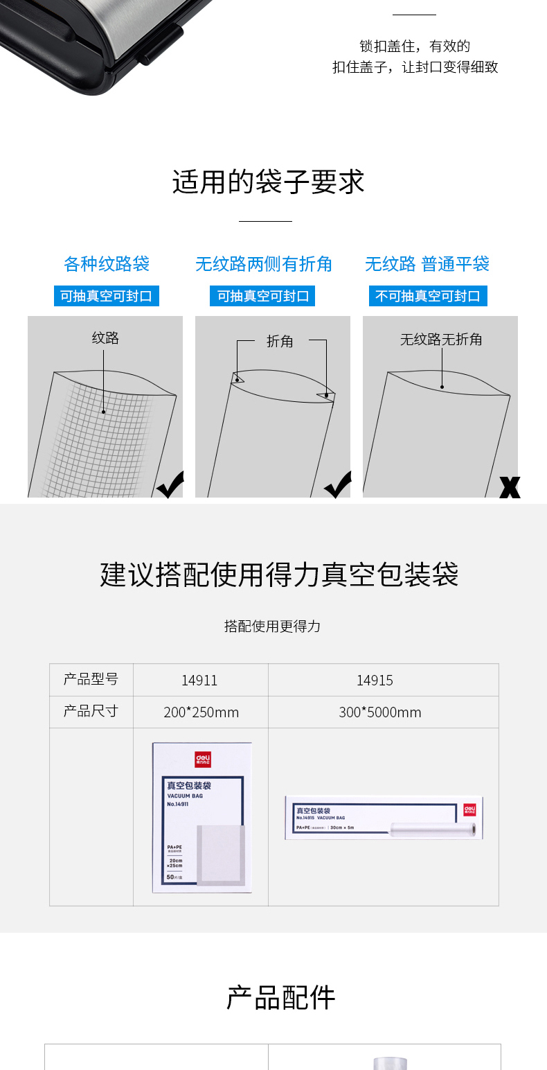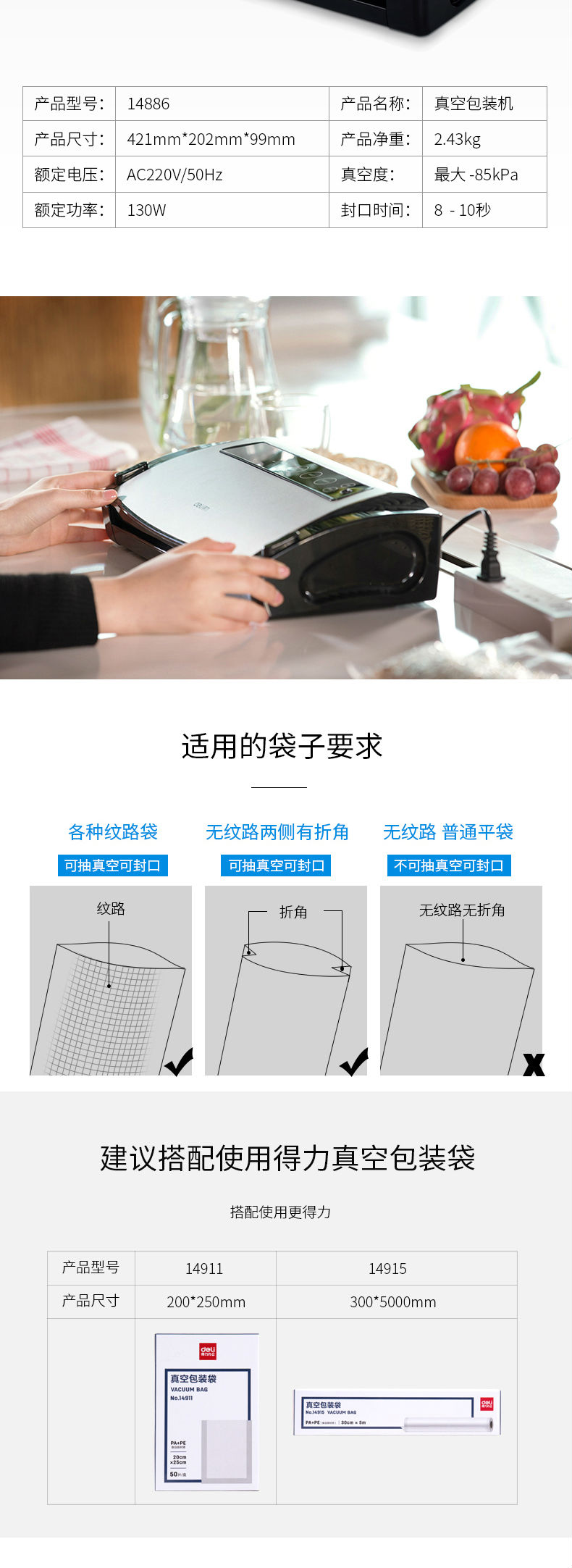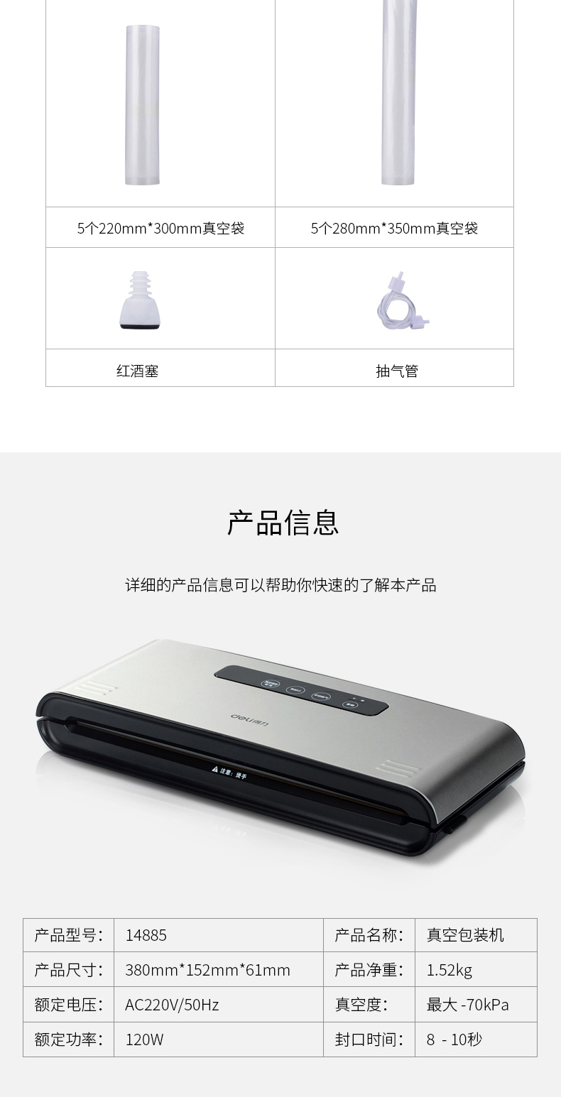 商品名称:得力14885真空包装机(黑色)