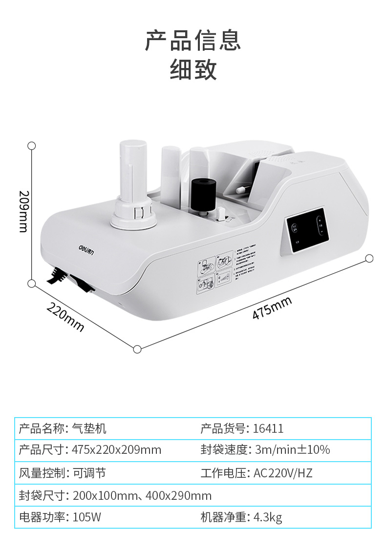 商品名称:得力16411气垫机(浅灰)