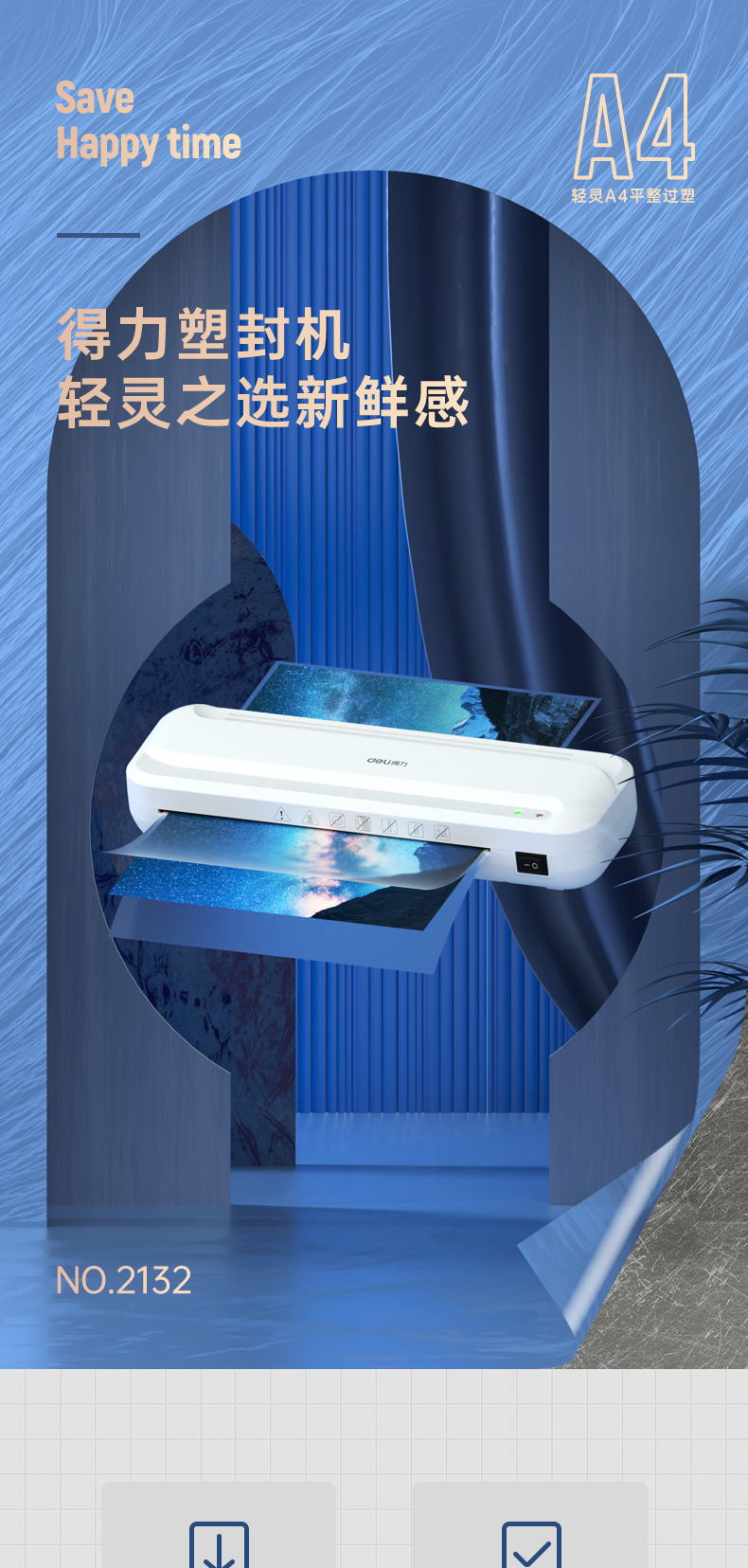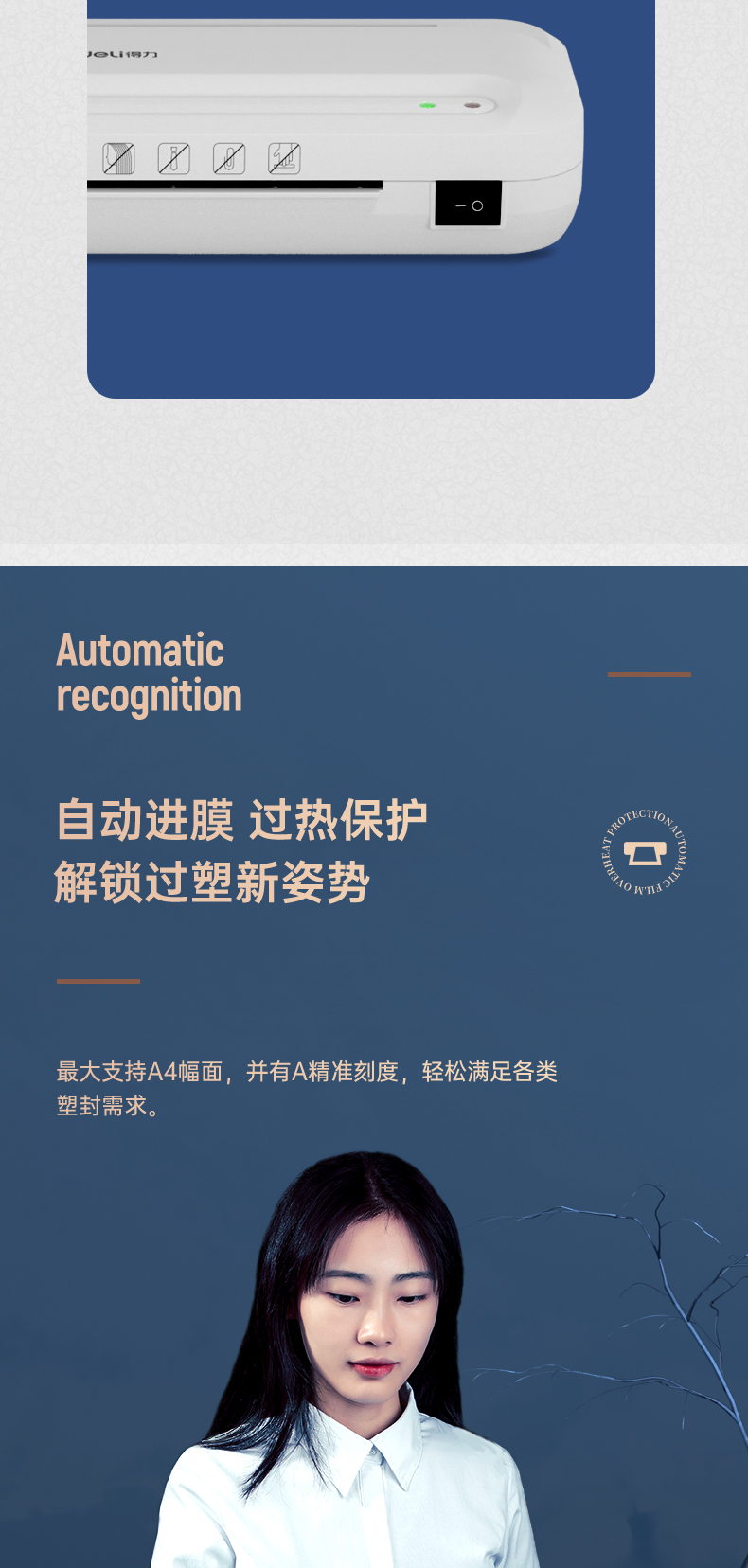 商品名称:得力2132塑封机(白)