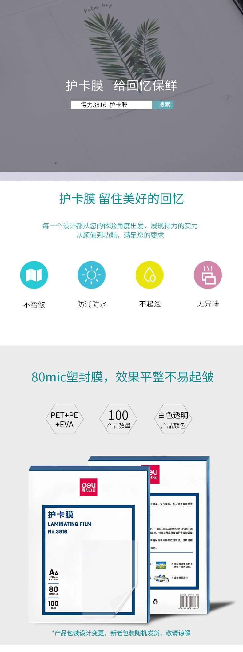 商品名称:得力3816护卡膜(透明)(100片/包)