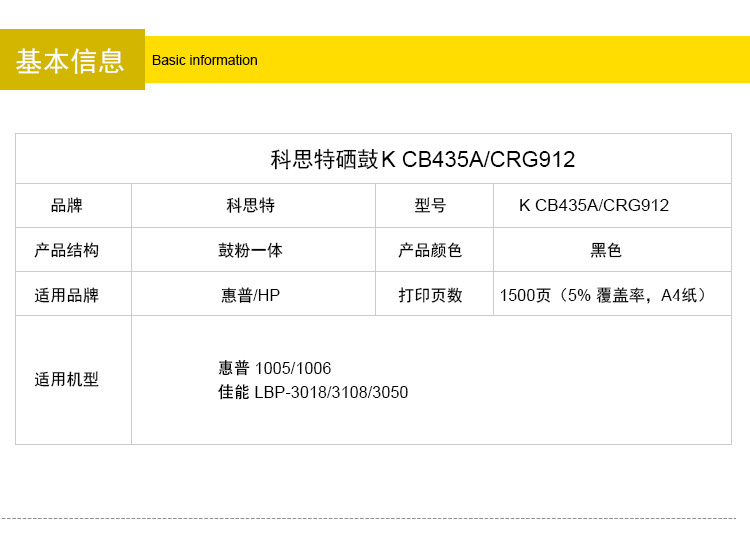 商品名称:科思特CB435A硒鼓 适用惠普P1005 P1006 CRG912 LBP 3108 3018 专业版