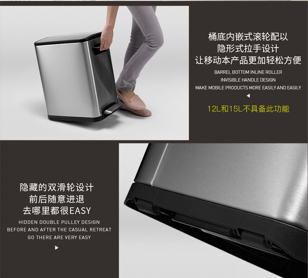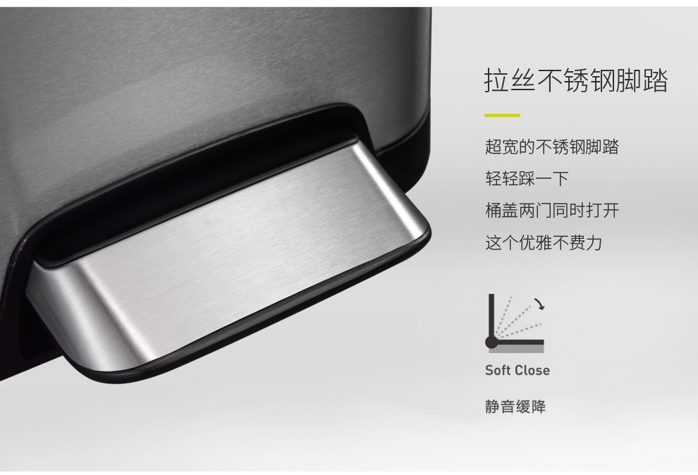商品名称:EKO垃圾桶脚踩开盖双门垃圾桶 砂钢 EK9377MT-12L