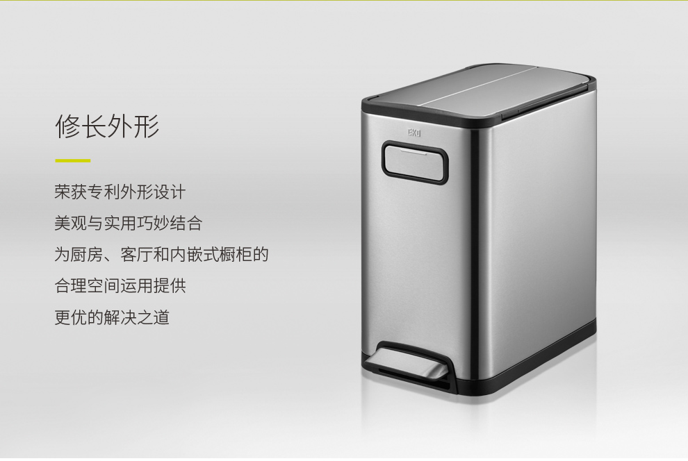 EKO垃圾桶脚踩开盖双门垃圾桶 砂钢 EK9377MT-12L