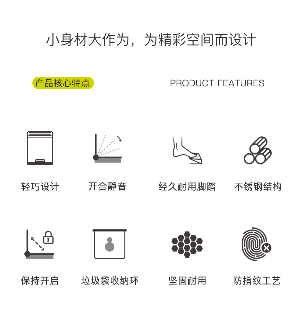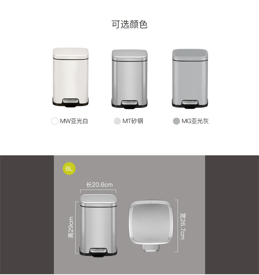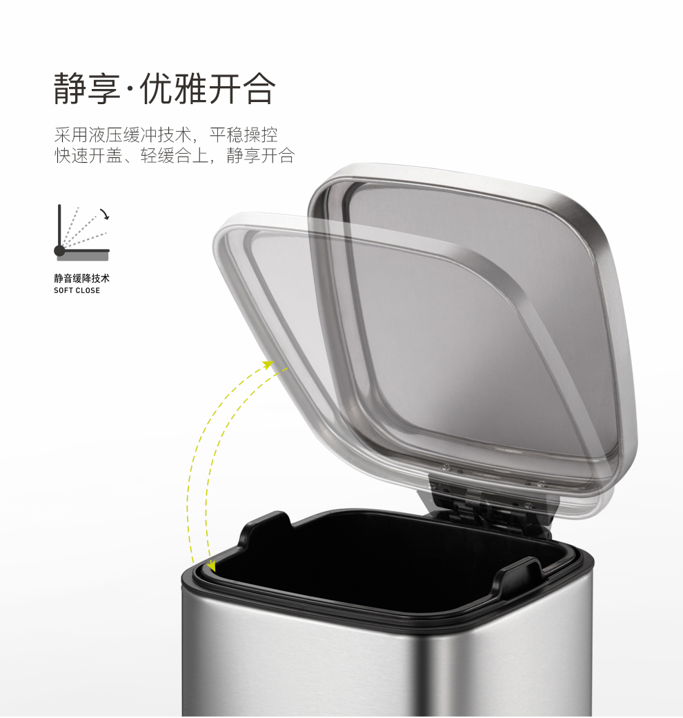 商品名称:EKO垃圾桶脚踩开盖垃圾桶 砂钢 EK9384MT-12L