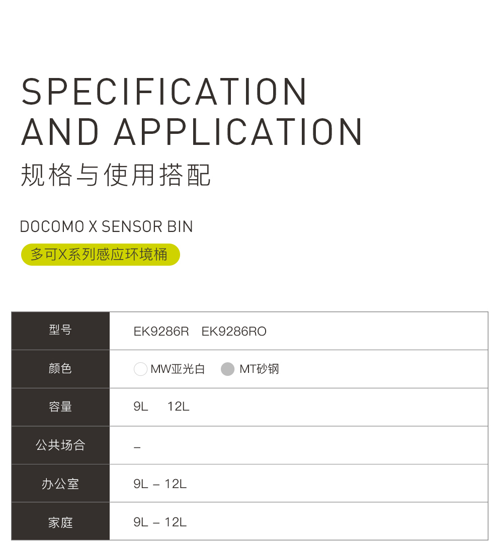 EKO智能垃圾桶自动感应开盖 砂钢 EK9286RMT-9L