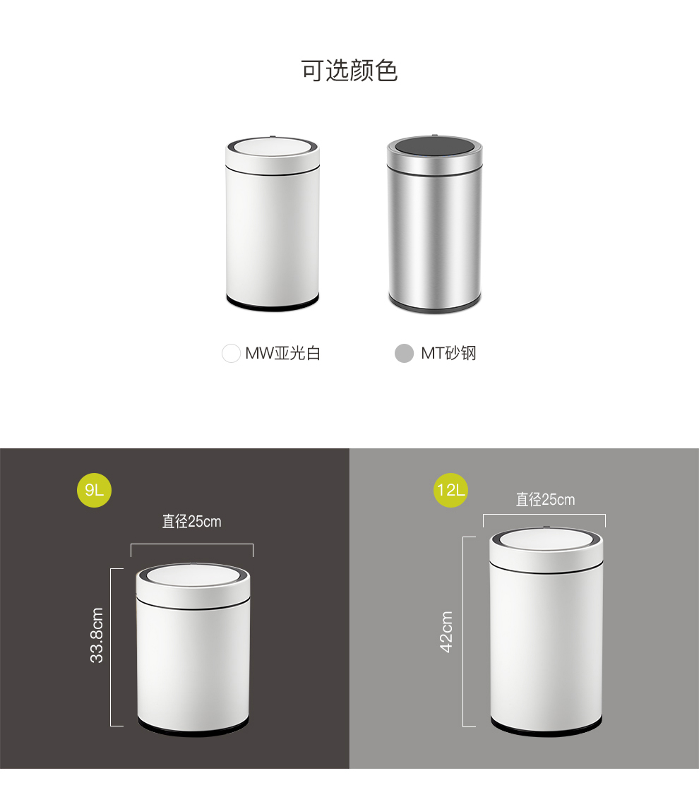 商品名称:EKO智能垃圾桶自动感应开盖垃圾桶 亚光白 EK9286RP-MW-9L