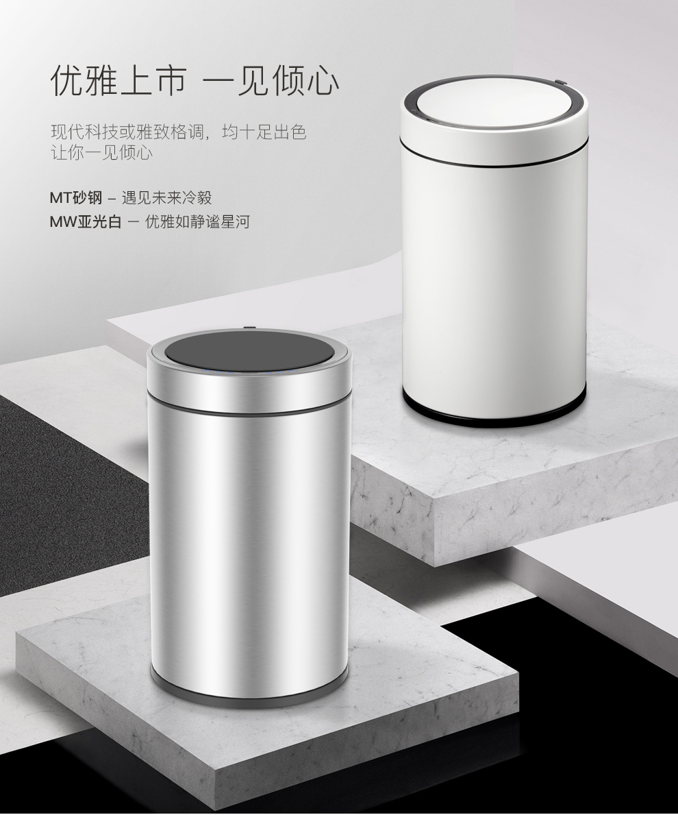商品名称:EKO智能垃圾桶自动感应开盖垃圾桶 亚光白 EK9286RP-MW-12L