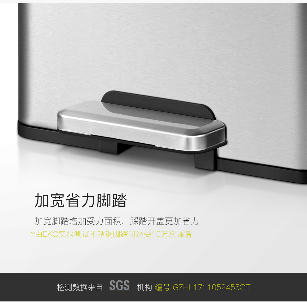 商品名称:EKO分类垃圾桶脚踩开盖垃圾桶 砂钢 双桶 EK9138MT-30L+30L