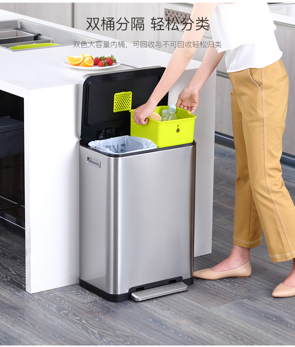 EKO垃圾桶脚踩开盖垃圾桶 砂钢 EK9368MT-20L