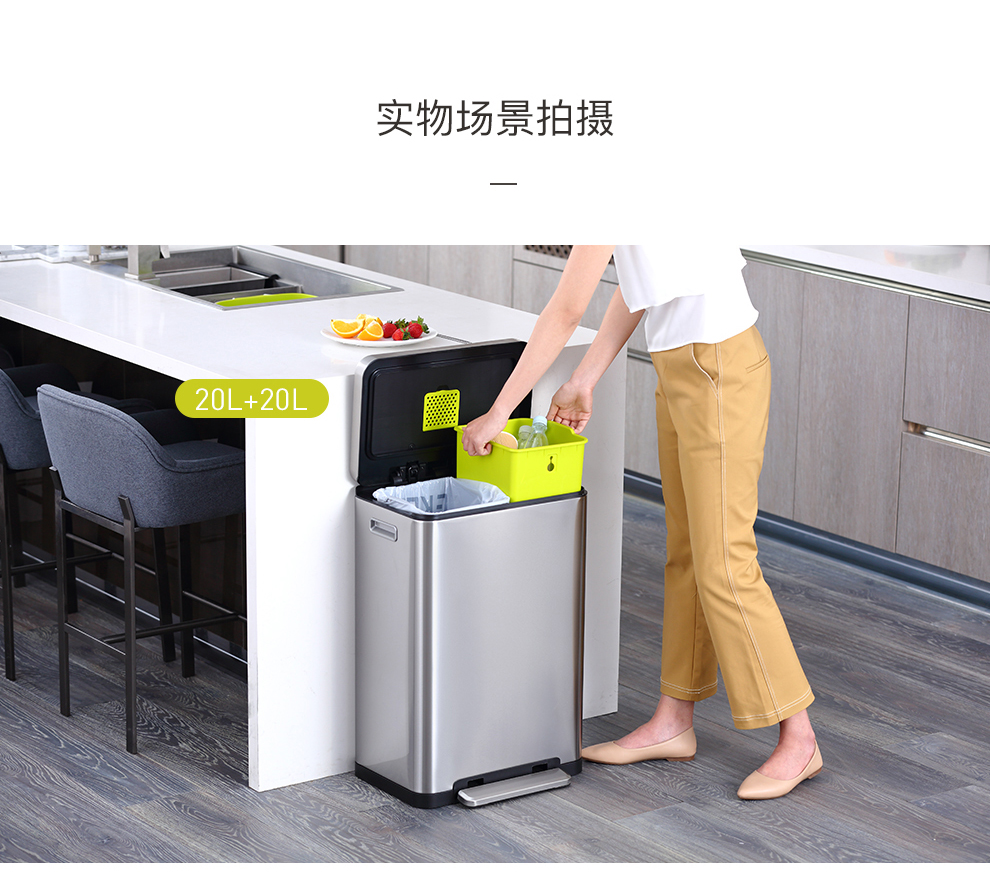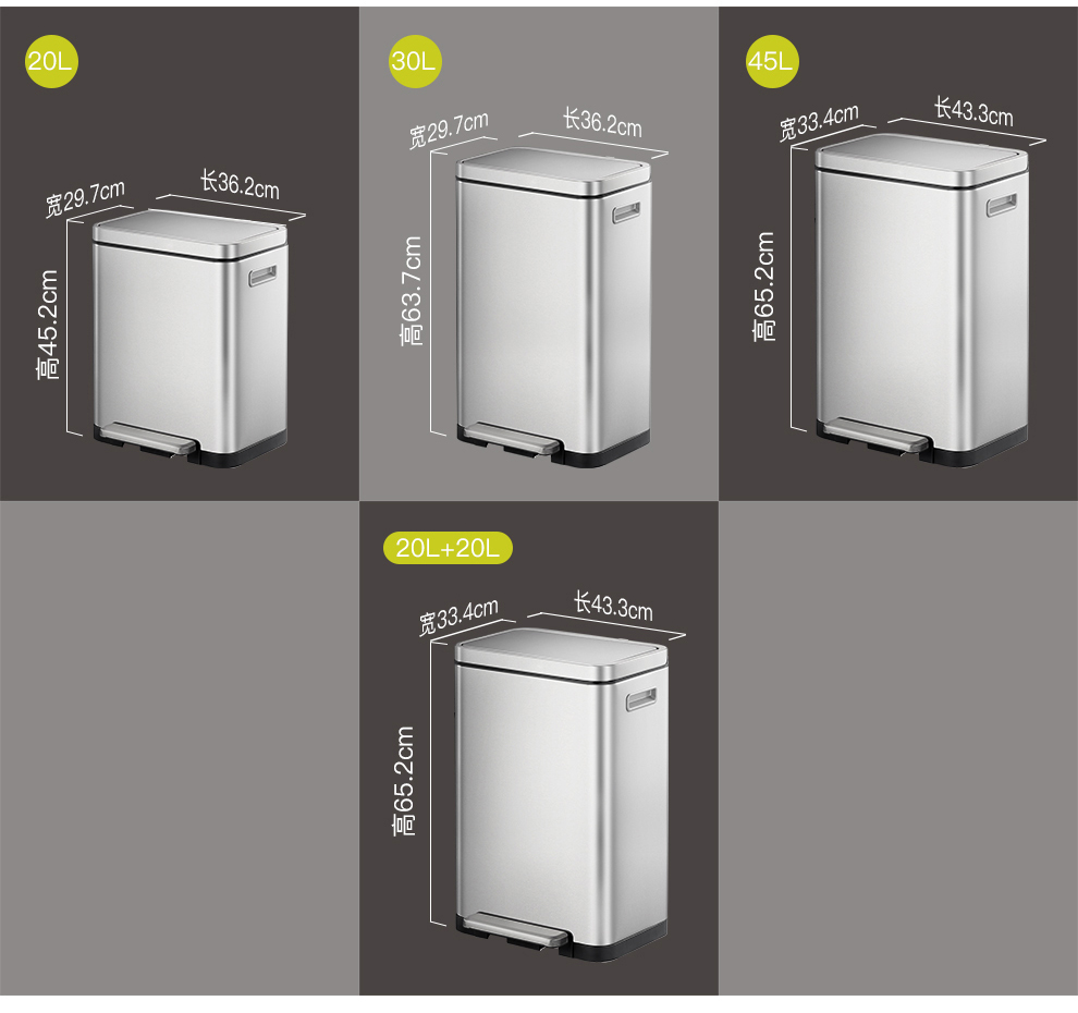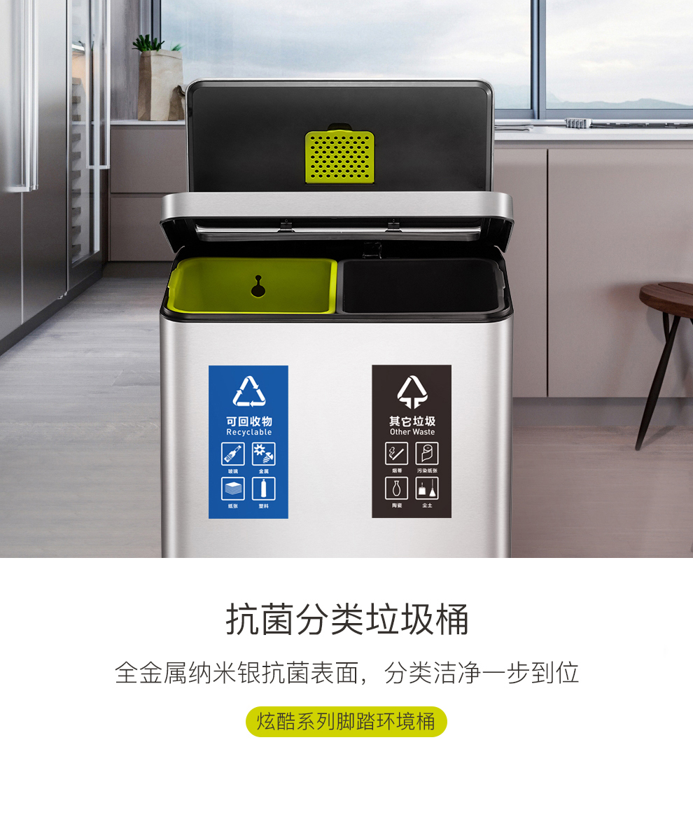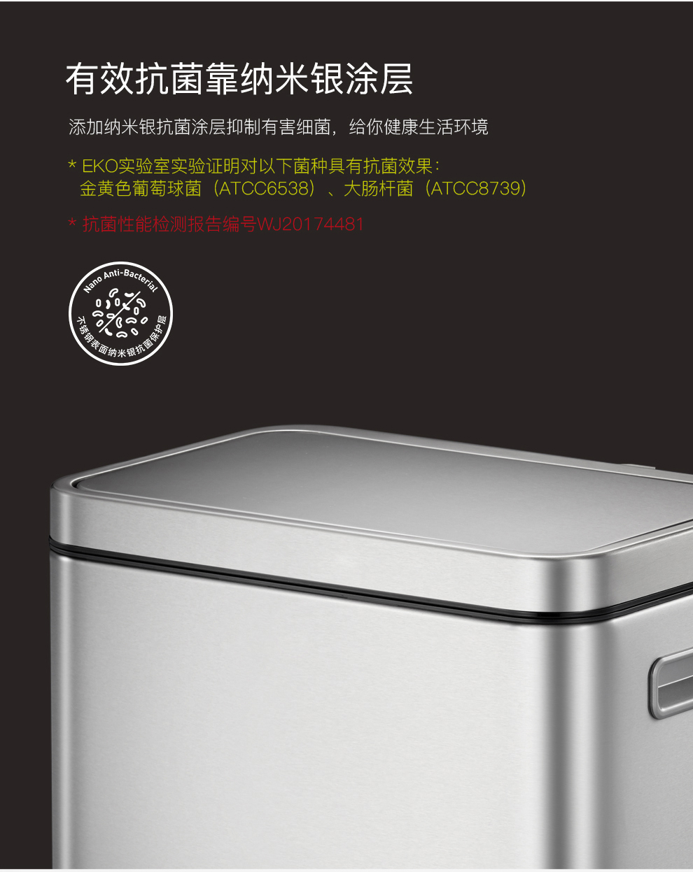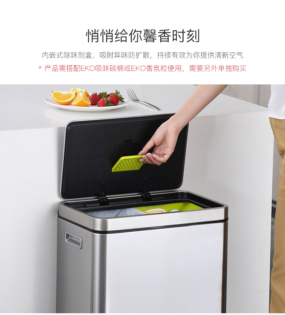 商品名称:EKO垃圾桶脚踩开盖垃圾桶 砂钢 EK9368MT-30L