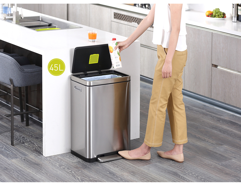 EKO垃圾桶脚踩开盖垃圾桶 砂钢 EK9368MT-20L+20L