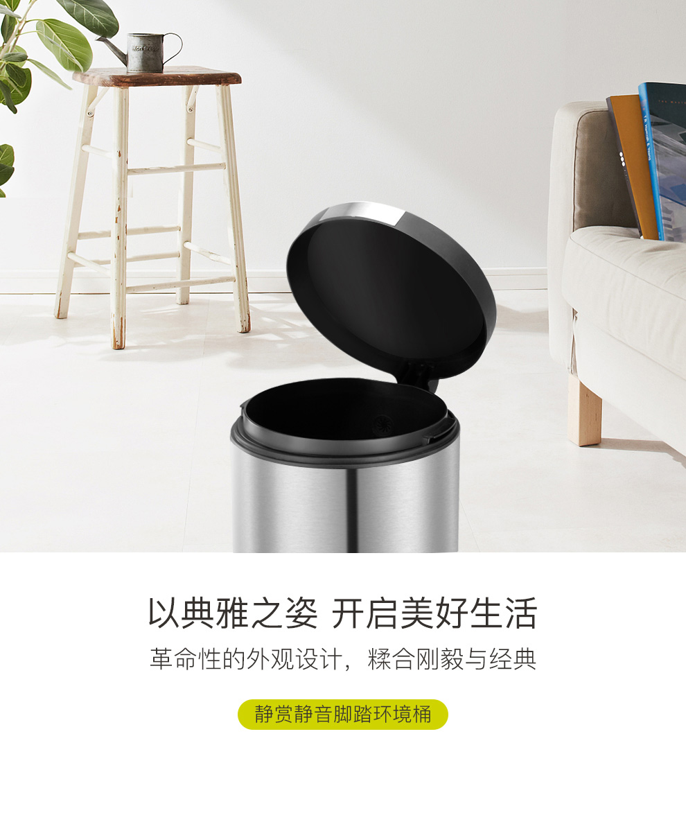 商品名称:EKO垃圾桶脚踩开盖垃圾桶 砂钢 EK9225MT-12L