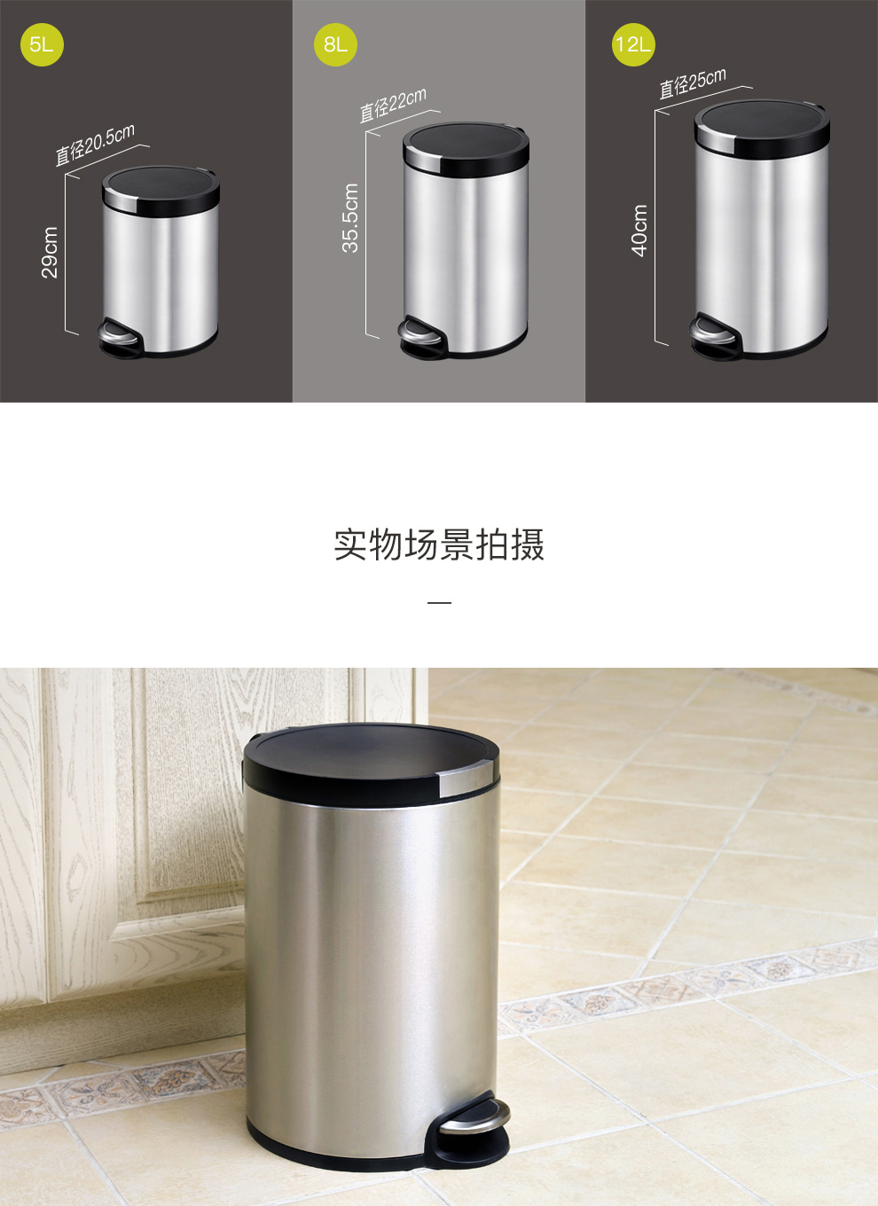 商品名称:EKO垃圾桶脚踩开盖垃圾桶 米黄 EK9225CR-5L