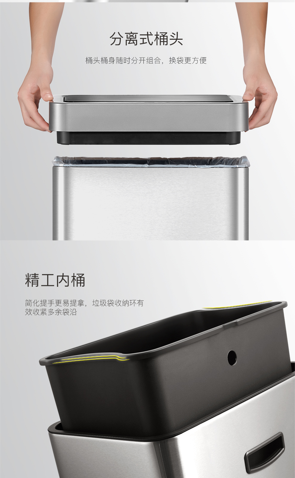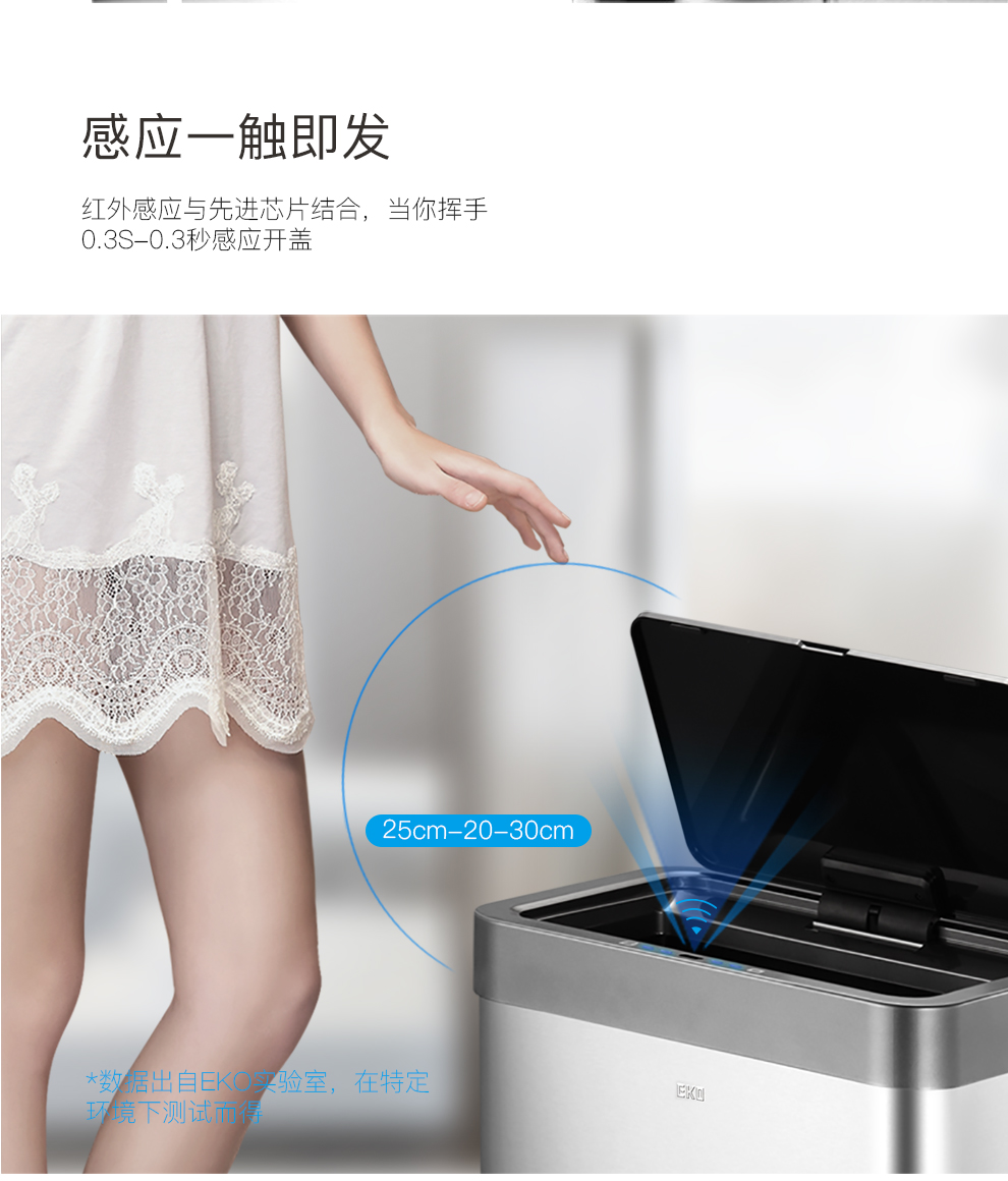 EKO智能垃圾桶自动感应开盖 砂钢 EK9260RMT-15L+15L
