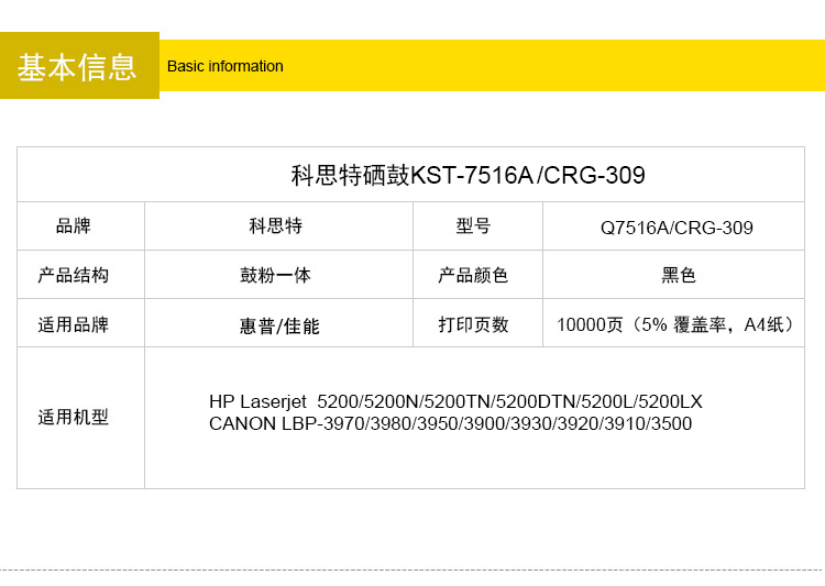 商品名称:科思特Q7516A硒鼓 适用惠普5200/N/TN/DTN/L/LX 佳能CRG309 3970 专业版