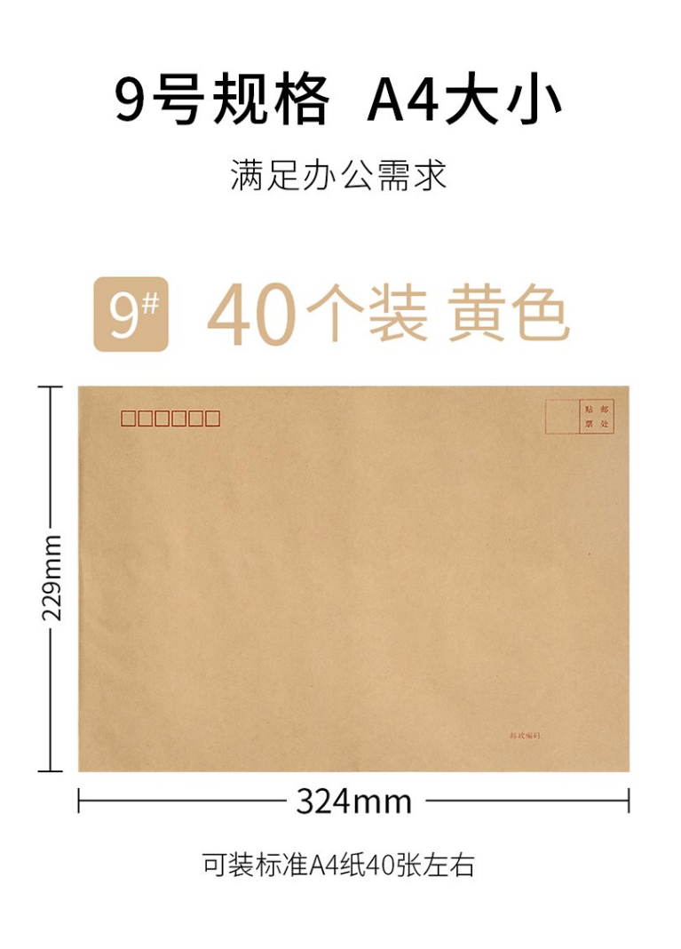 商品名称:得力25201牛皮信封(混)-9号(40个/包)
