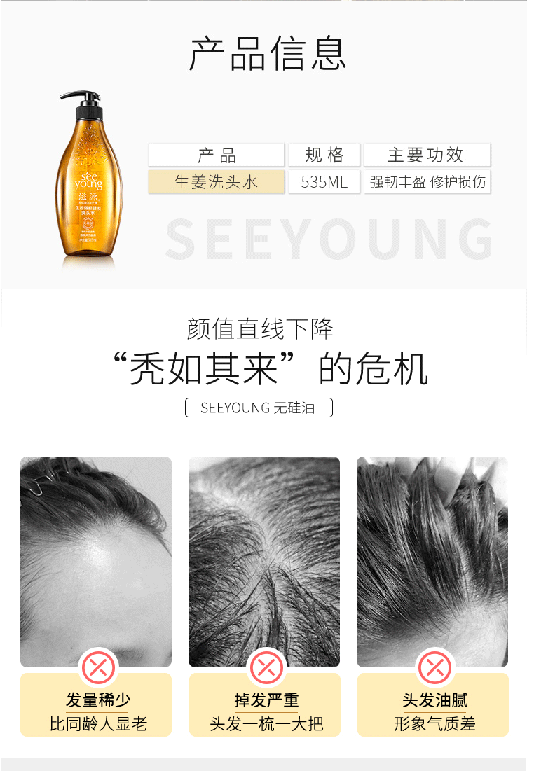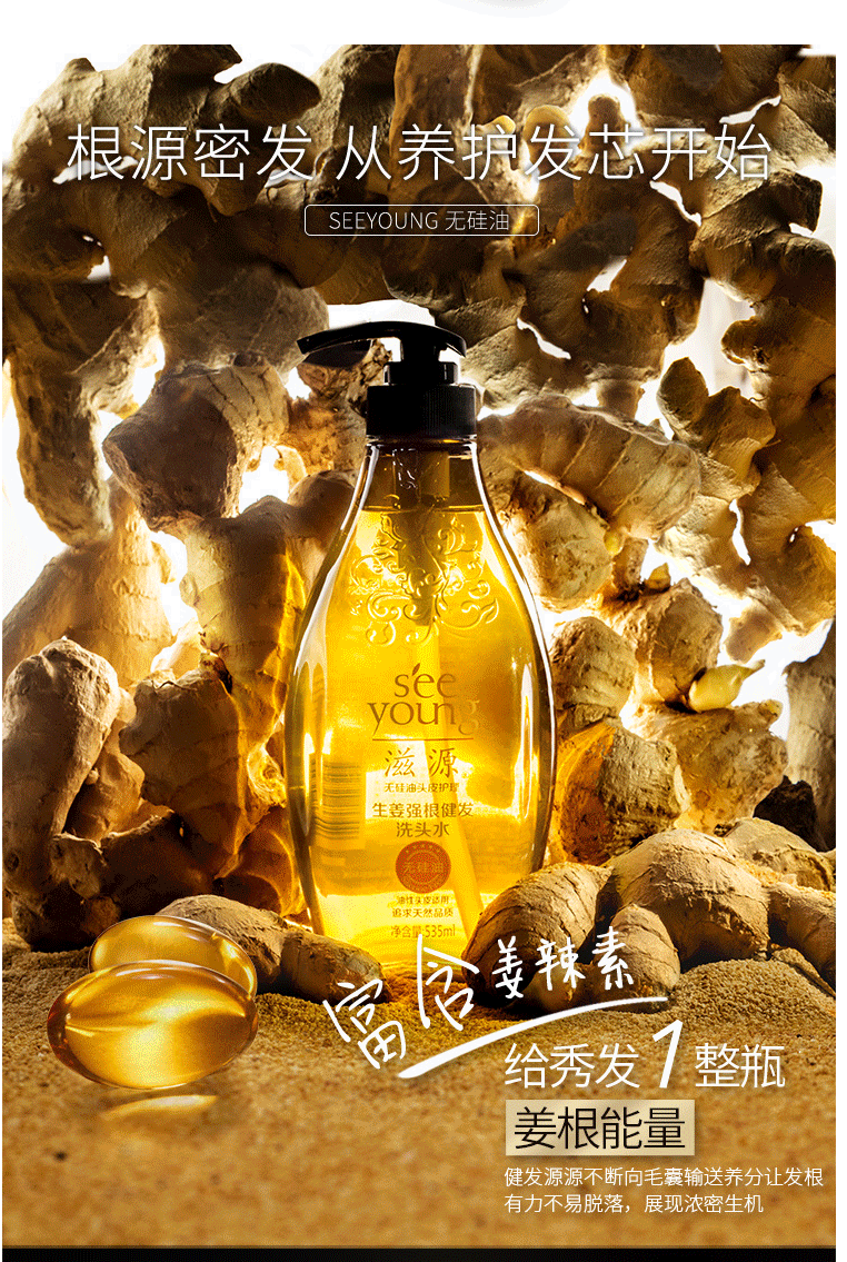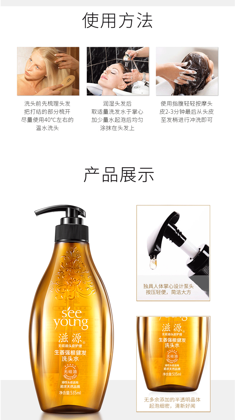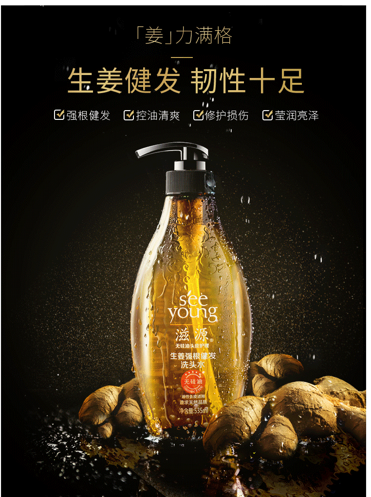 商品名称:滋源生姜洗发水 无硅油强根健发洗发水535ml(强韧发根 解救断发 男士女士通用 油性)