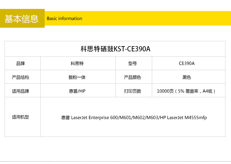 商品名称:科思特CE390A硒鼓 适用惠普LaserJet Enterprise 600/M601/M602/M603/HP LaserJet M4555mfp 专业版