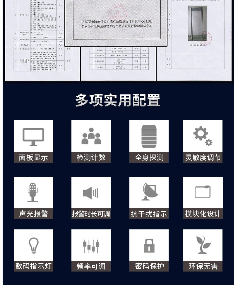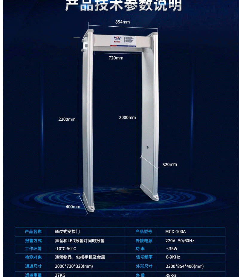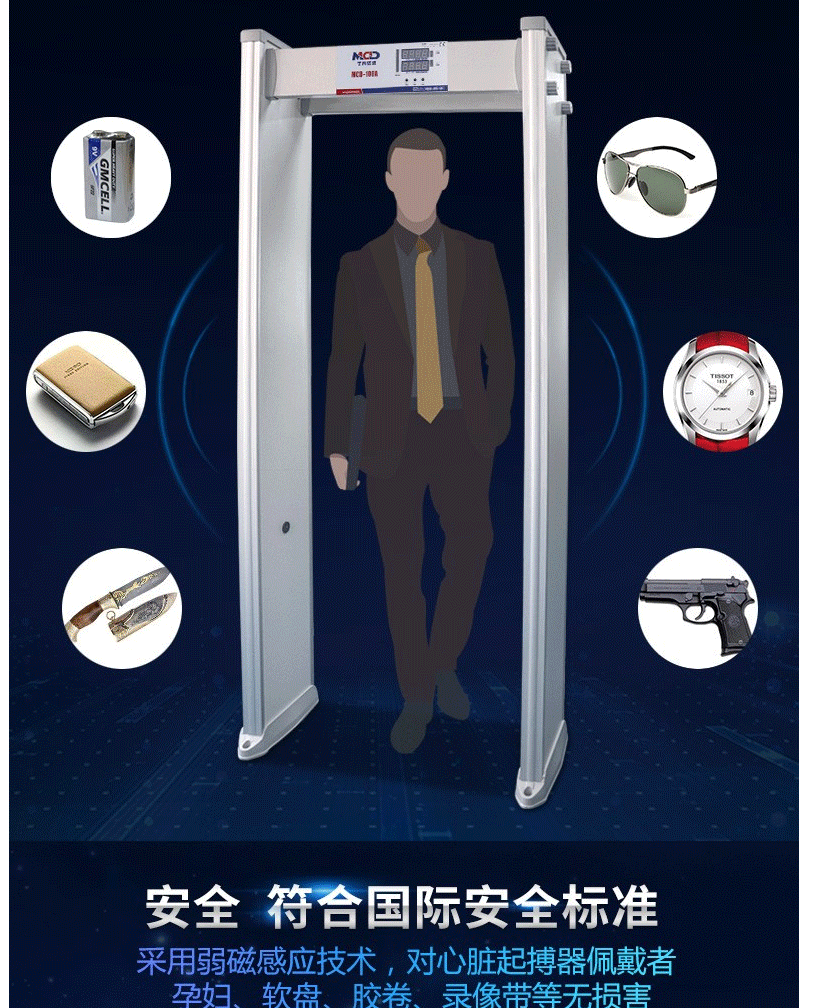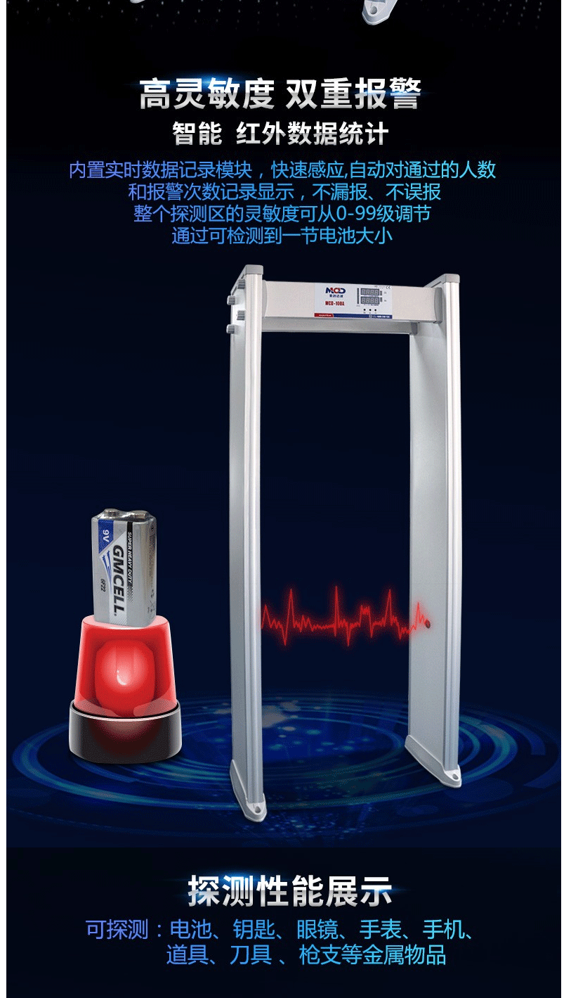 商品名称:美创达诚MCD-100A-全区安检门金属探测安全检查门 浅灰色