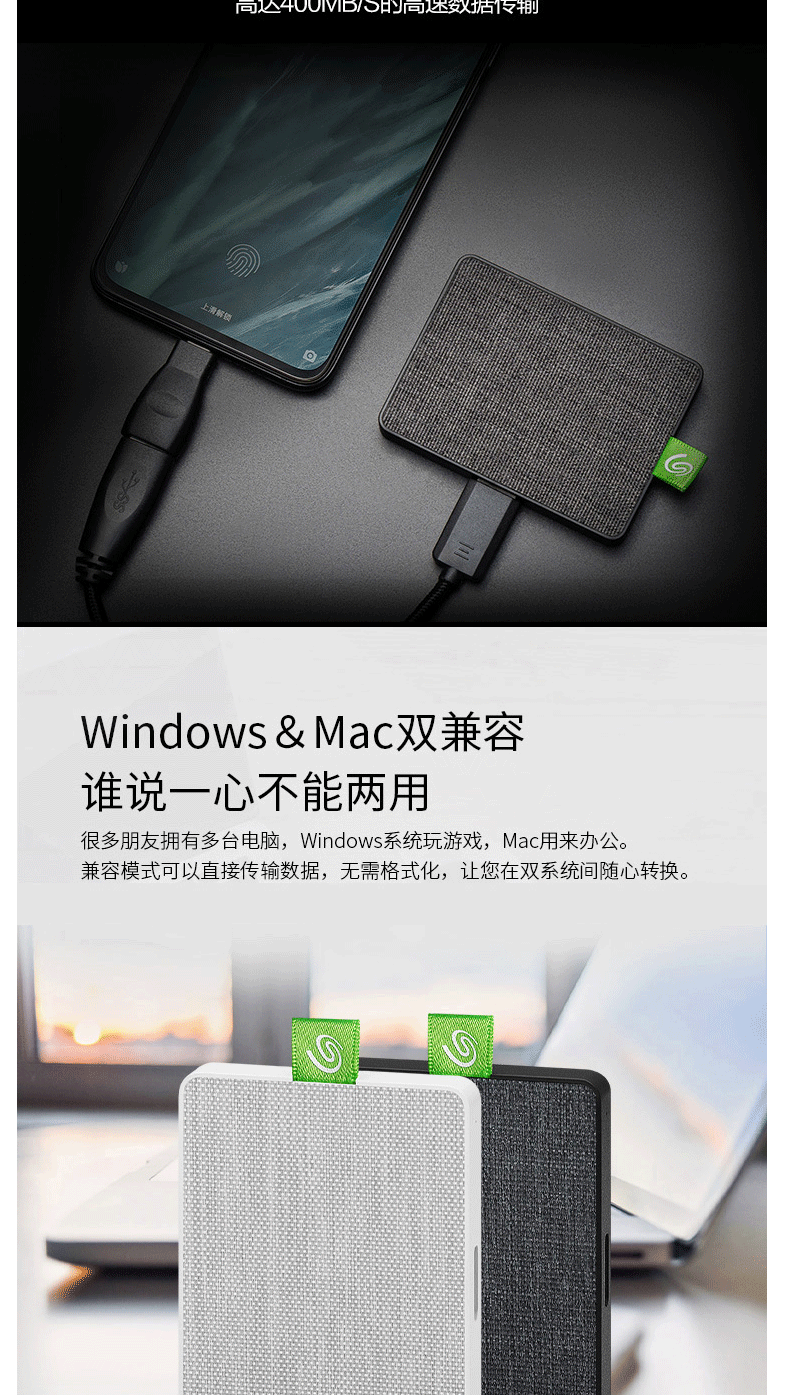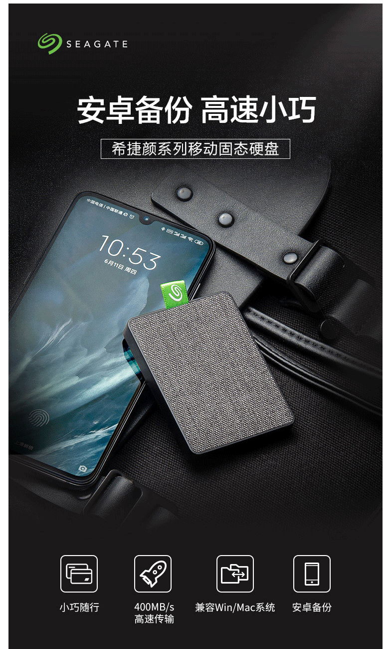 希捷(Seagate) 固态移动硬盘 1TB 迷你小型 高速便携 STJW1000400