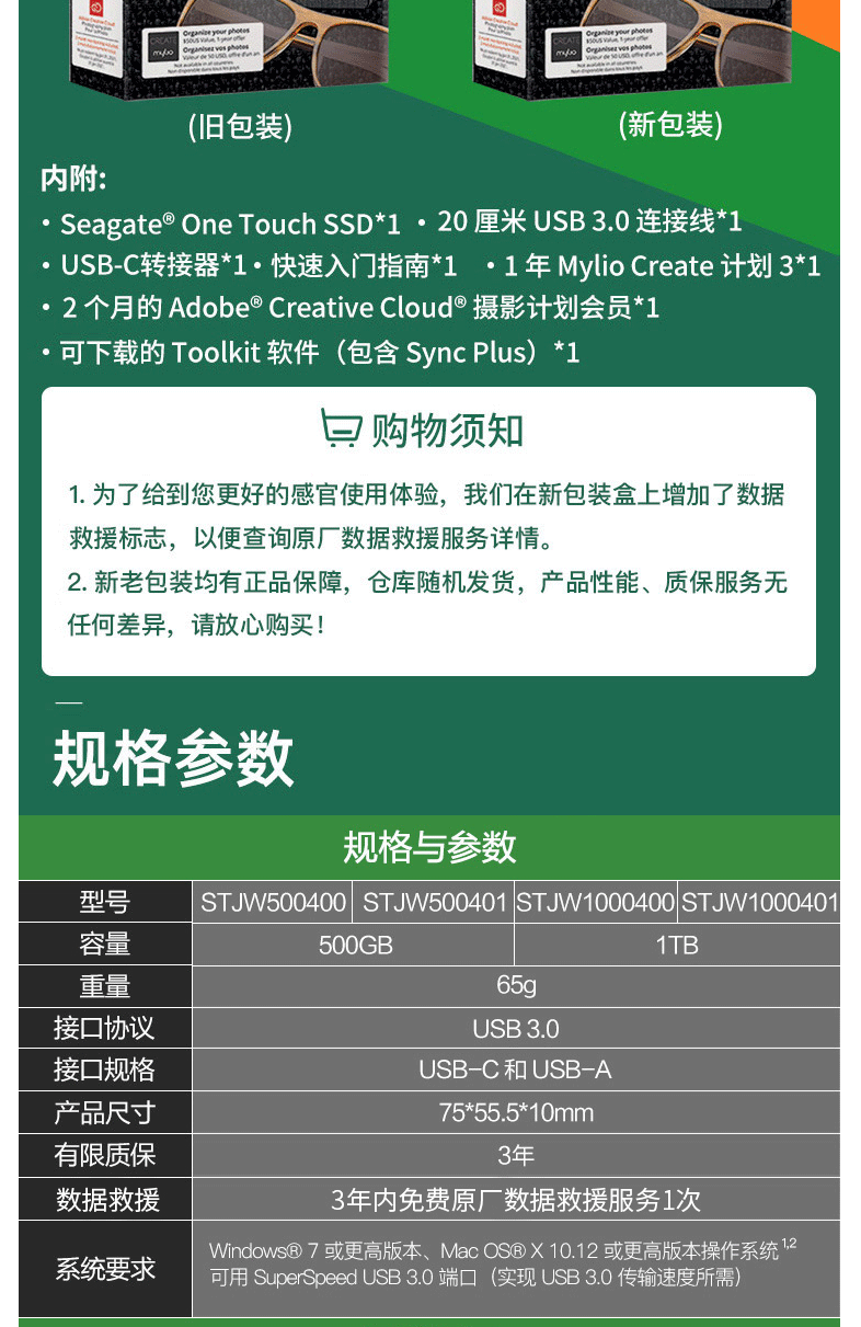 商品名称:希捷(Seagate) 固态移动硬盘 1TB 迷你小型 高速便携 STJW1000400