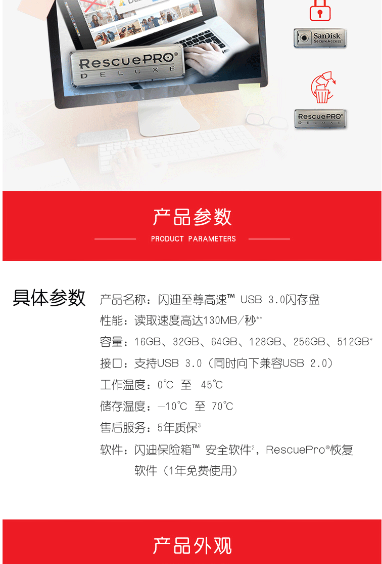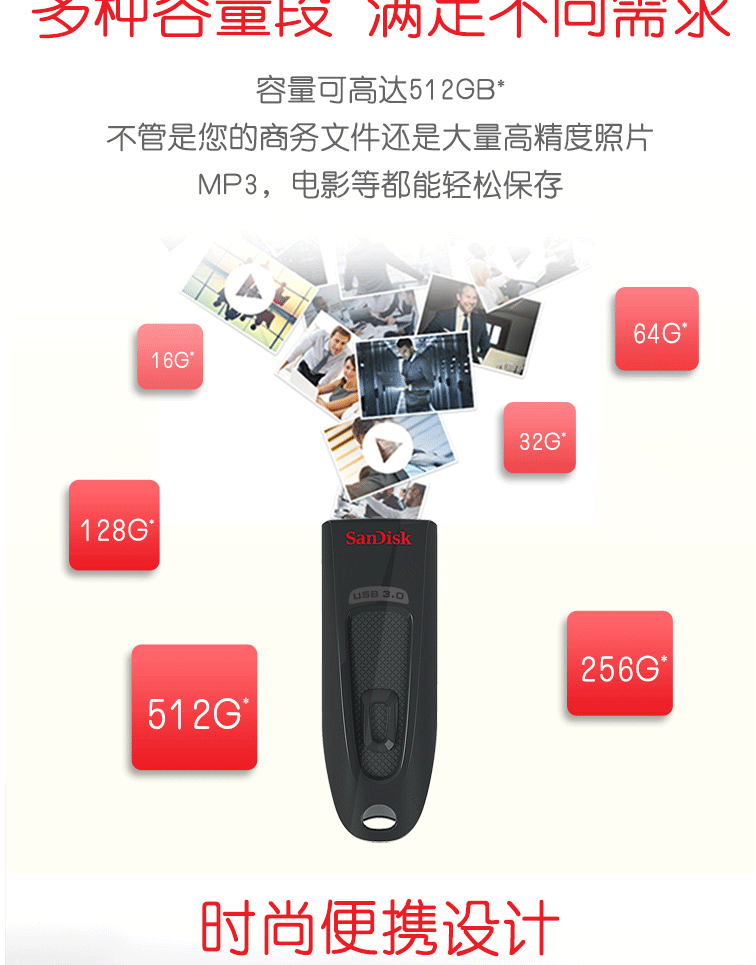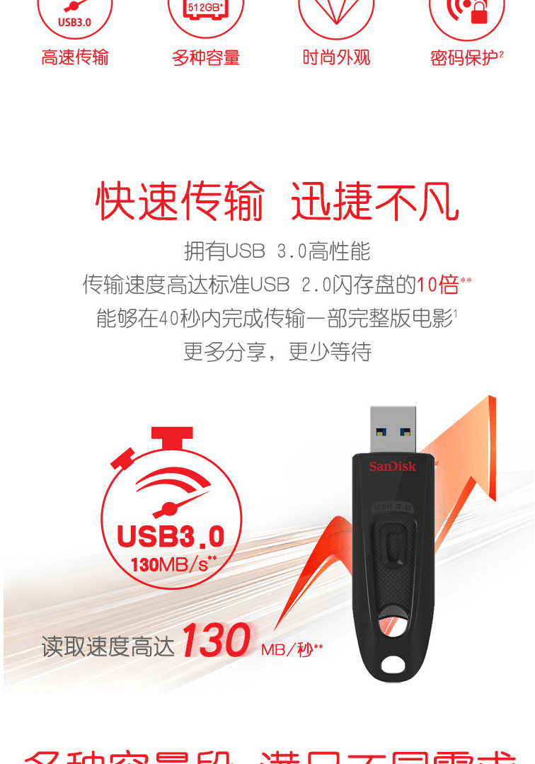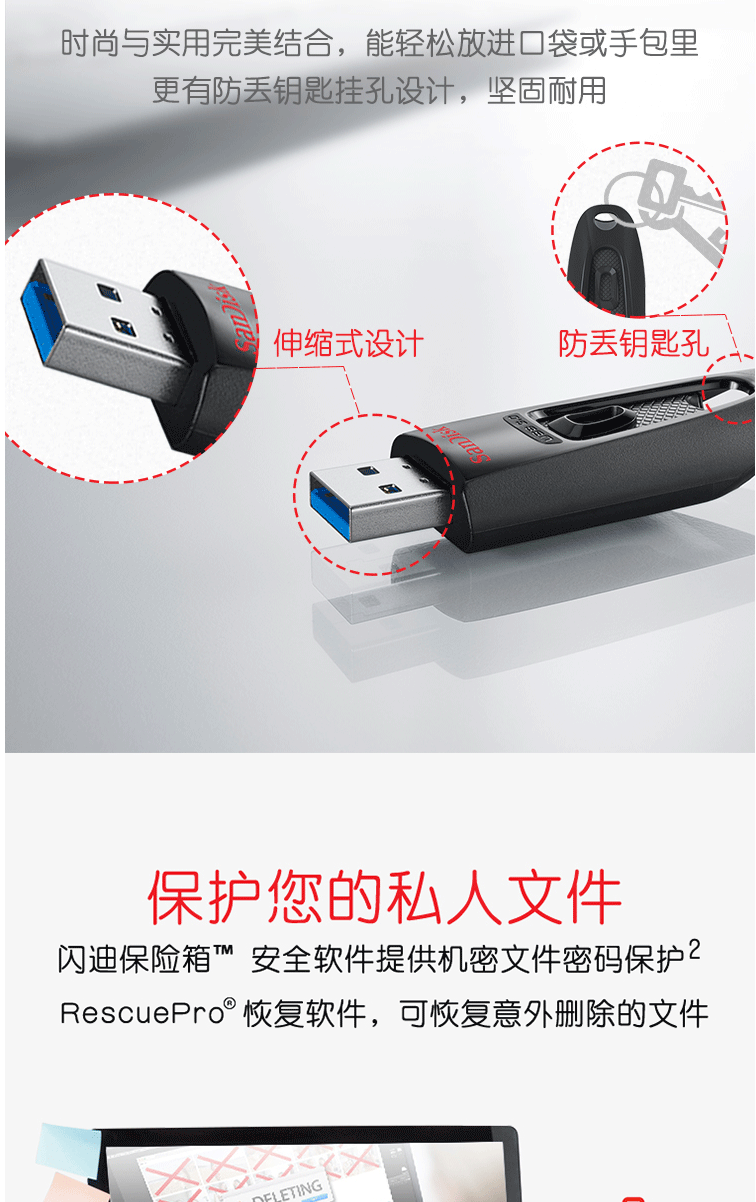 商品名称:闪迪(SanDisk)128GB USB3.0 U盘 CZ48至尊高速 黑色