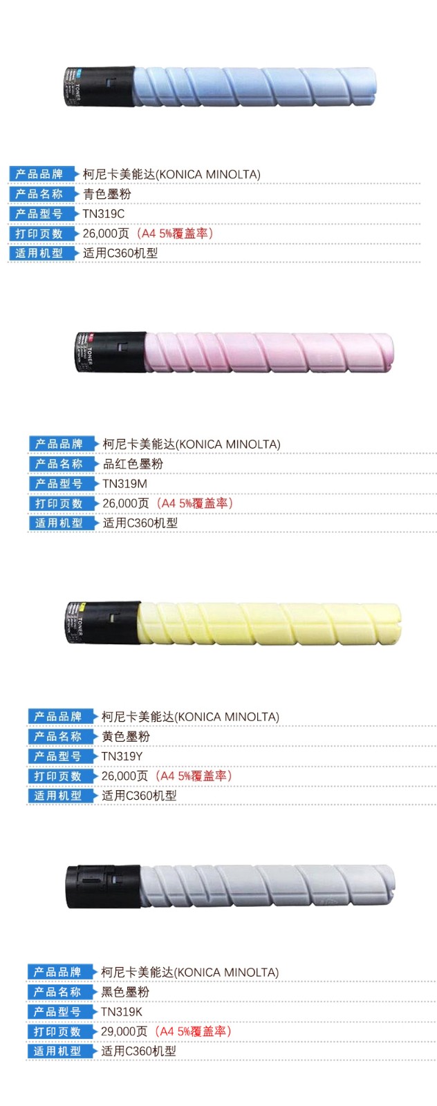 商品名称:柯尼卡美能达 TN319M红色粉盒 合适C360机型