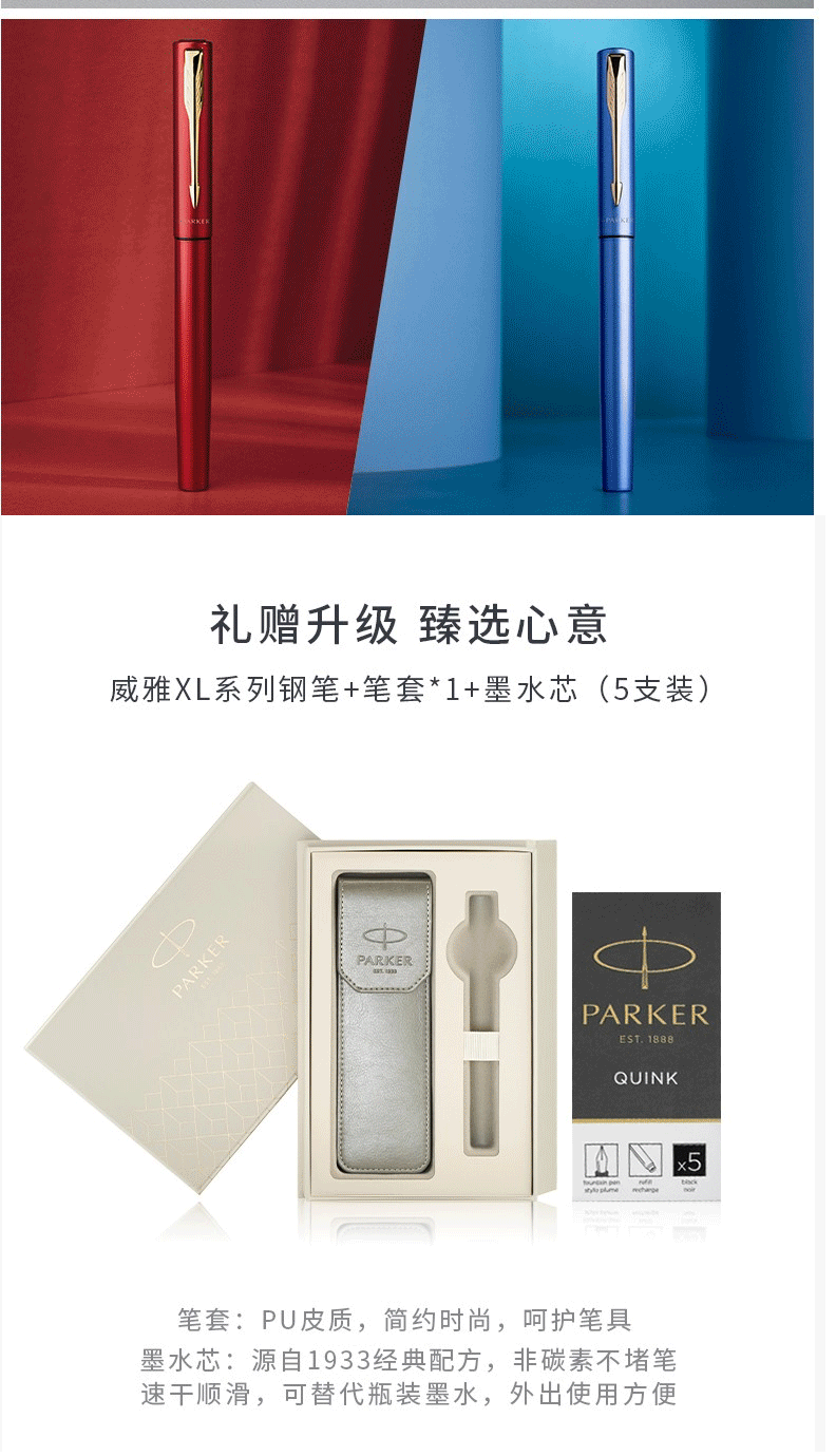 派克钢笔(PARKER)威雅钢笔 钢杆金夹墨水笔(钢笔+笔套礼盒)