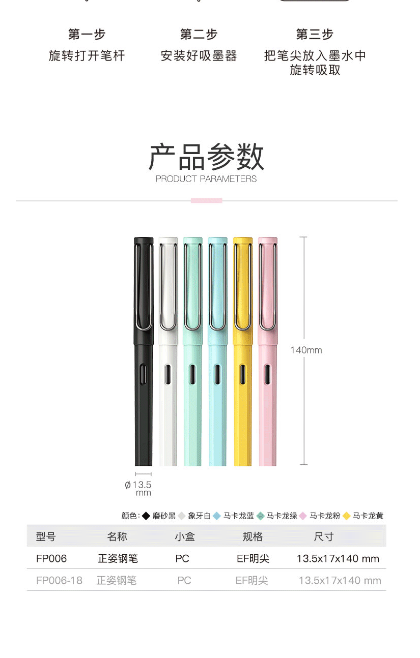 商品名称:齐心(Comix)铱金钢笔 EF明尖 磨砂黑 FP006