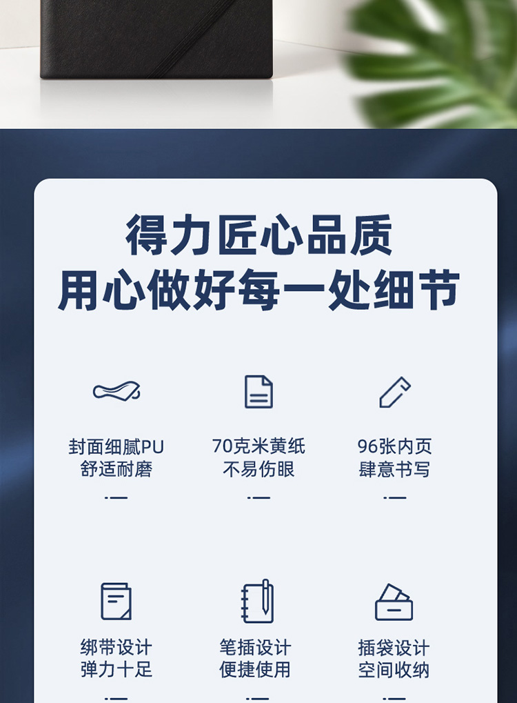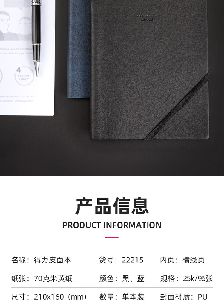 商品名称:得力22215商务插笔皮面本(黑色)